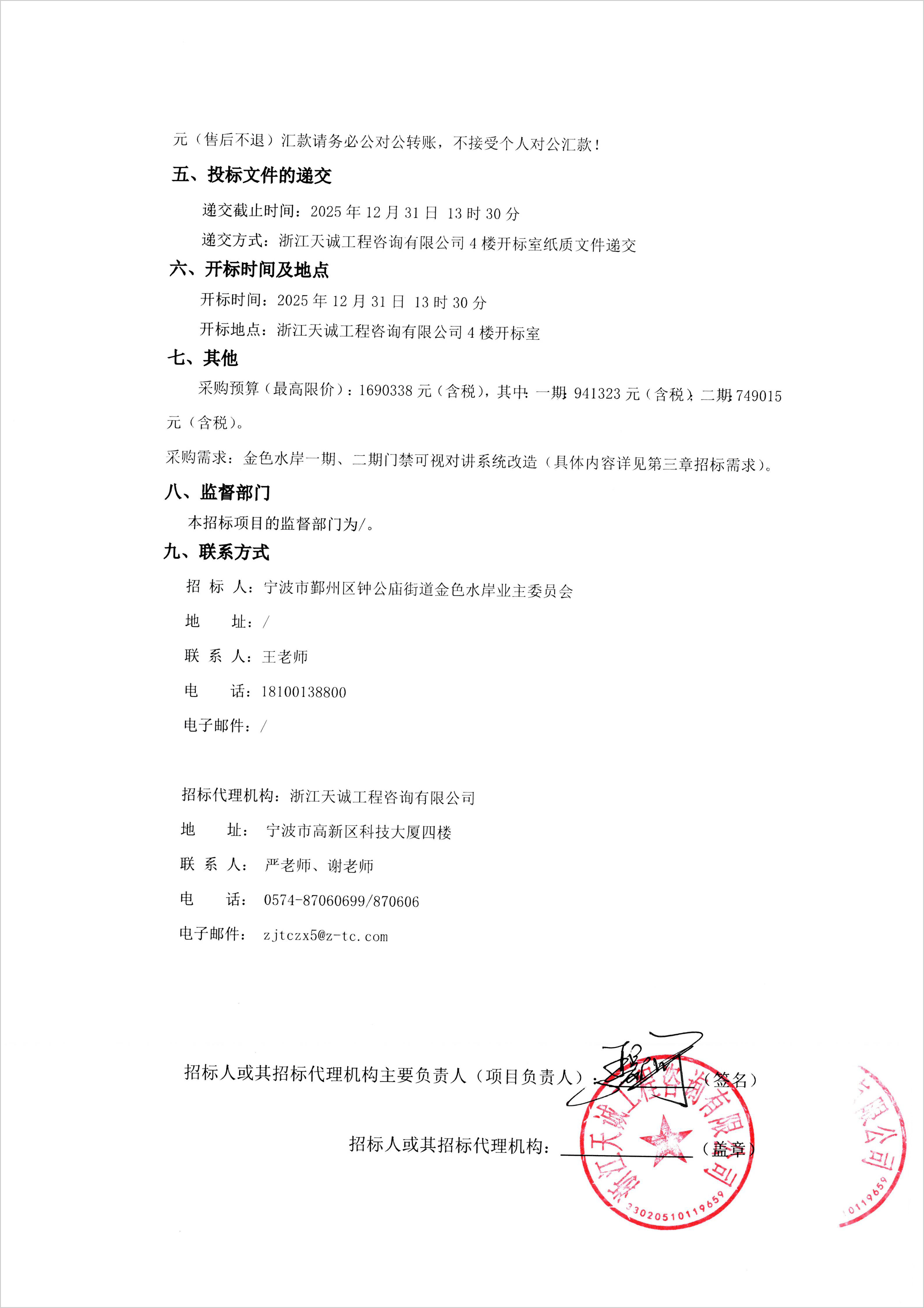 金色水岸可视对讲系统改造招标公告
