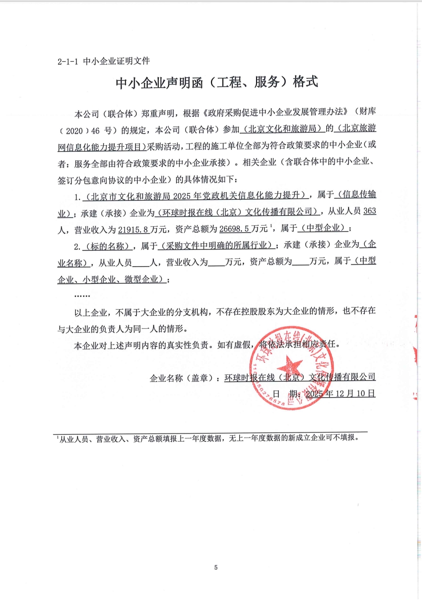 | 环球时报在线(北京)文化传播有限公司 | * | ***万元 | ***万元 | 近年来,随着信息技术的快速发展,北京市文化和旅游局各下属单位,根据业务需要建设了“旅游网多语种主站”、“旅游网多语种资源库站”等信息化应用,在信息发布、文化推广、辅助办公等方面发挥了较大的作用,提升了工作效率。但是,现有的服务器、网络、安全设施在安全性、性能和稳定性方面已经无法适应当前业务应用的需求,同时,业务应用分布在不同地点,也增加了信息安全保障、运行维护等工作的管理成本。 |