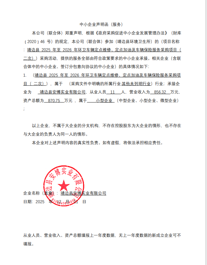 靖边县2025年至2026年环卫车辆定点维修、定点加油及车辆保险服务采购项目(二次)中标(成交)结果公告