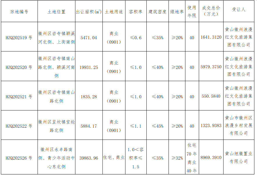 【中标公示】徽州区国有建设用地使用权挂牌成交结果公示(HJAGT2025P070)【市本级】【公告中】