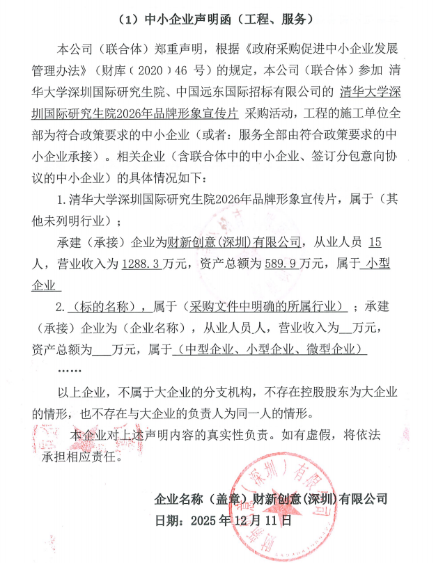 *.服务范围:清华大学深圳国际研究生院****年品牌形象宣传片,详见招标文件第二章用户需求书。
