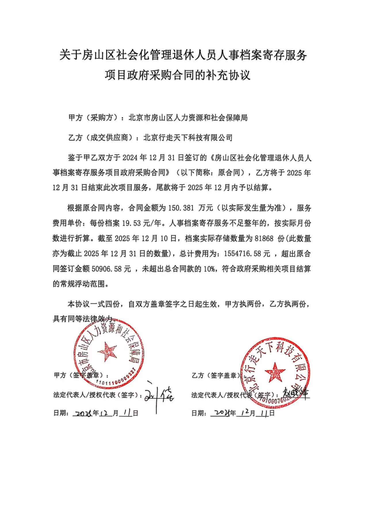 [更正]房山区社会化管理退休人员人事档案寄存服务项目政府采购合同变更公告