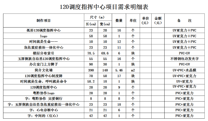 项目名称:玉屏侗族自治县人民医院***调度中心标识标牌项目。