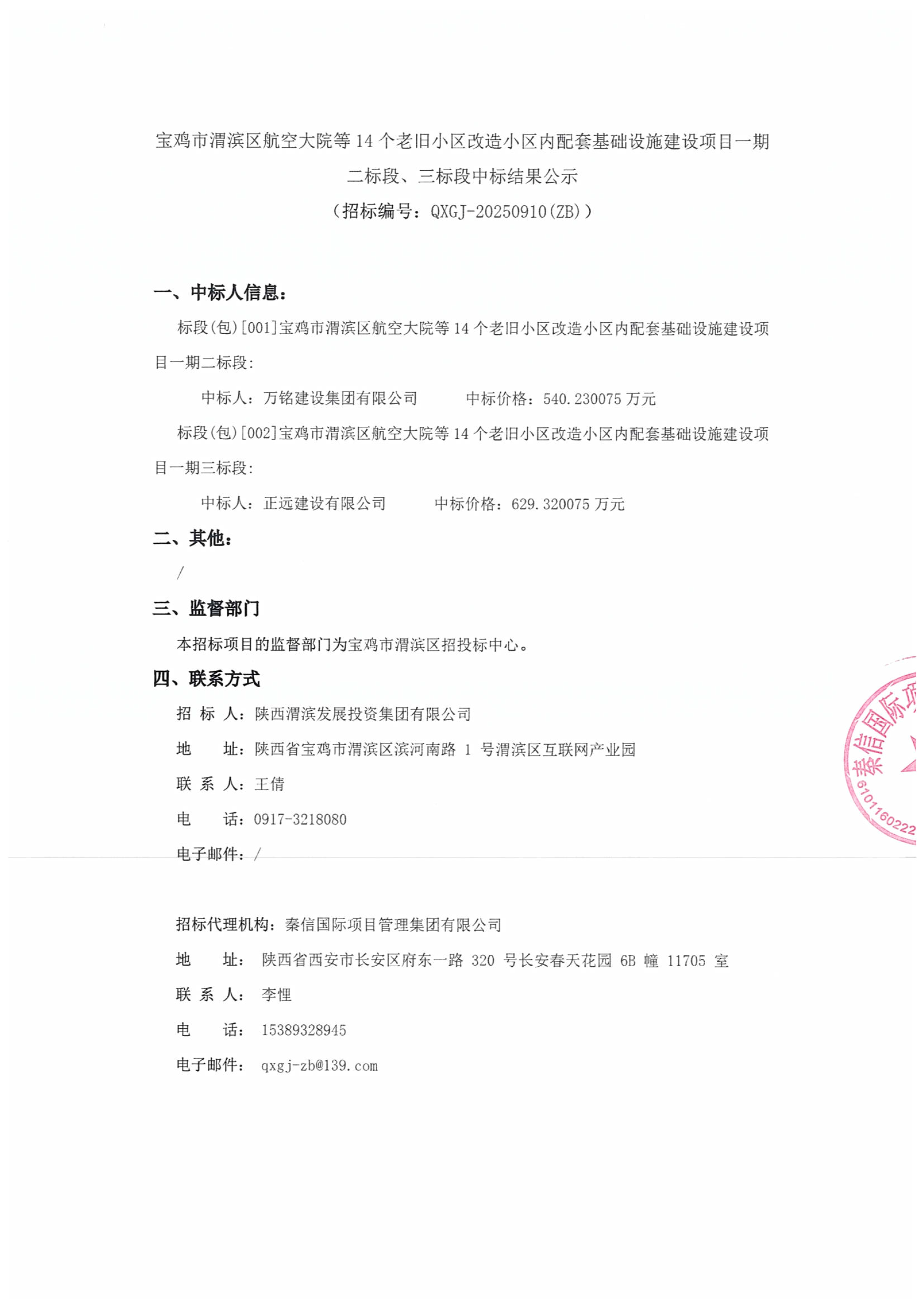 市渭滨区航空大院等**个老旧小区改造小区内配套基础设施建设项目一期二、三标段中标结果公示*