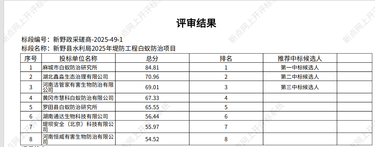 新野县水利局2025年堤防工程白蚁防治项目-成交公告
