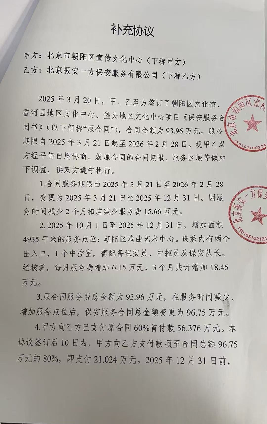 供应商(乙方): 北京振安一方保安服务有限公司