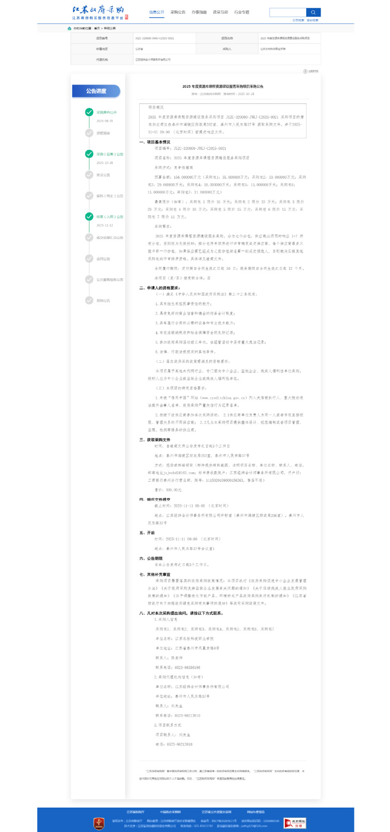 2025年度资源库课程资源建设服务采购项目采购公告