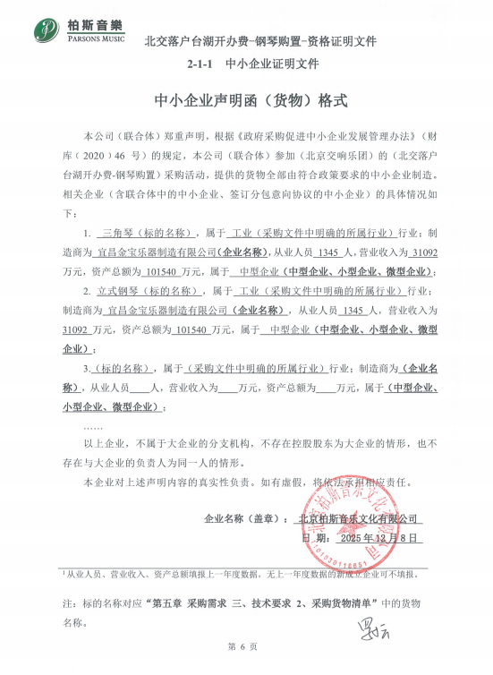中标成交供应商名称:北京柏斯音乐文化有限公司