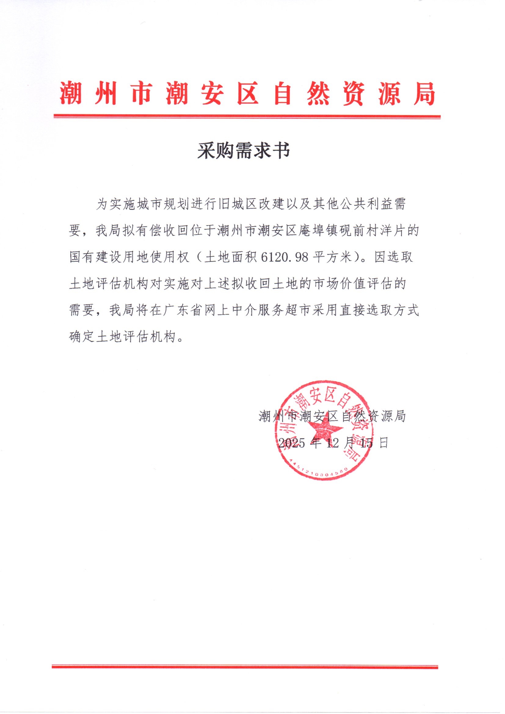 潮安区庵埠镇砚前村土地评估项目采购公告