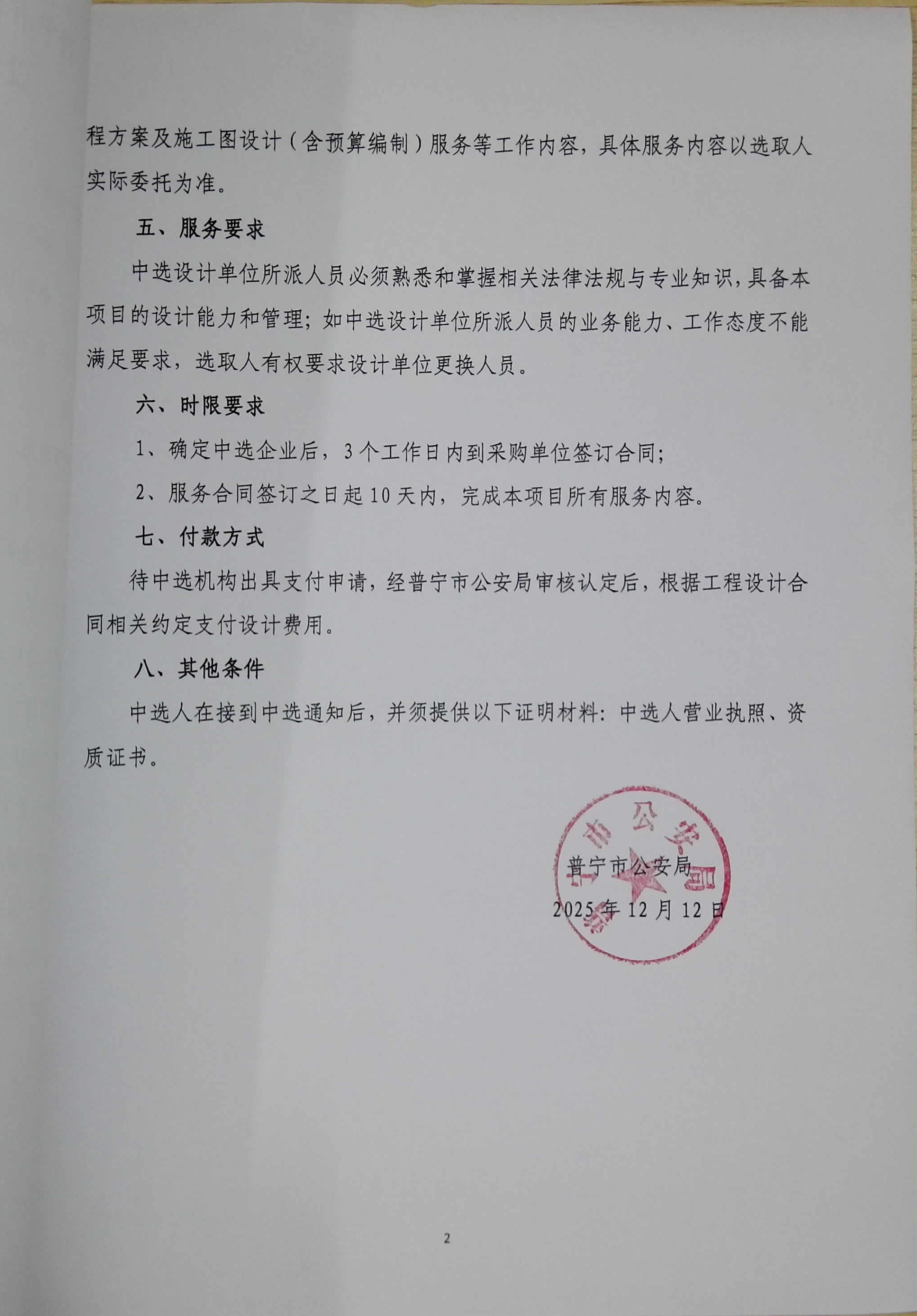 ********** **:** ,在广东省网上中介服务超市为普宁市公安局 公开选取工程造价咨询,工程设计中介服务机构,现将相关事项公告如下: