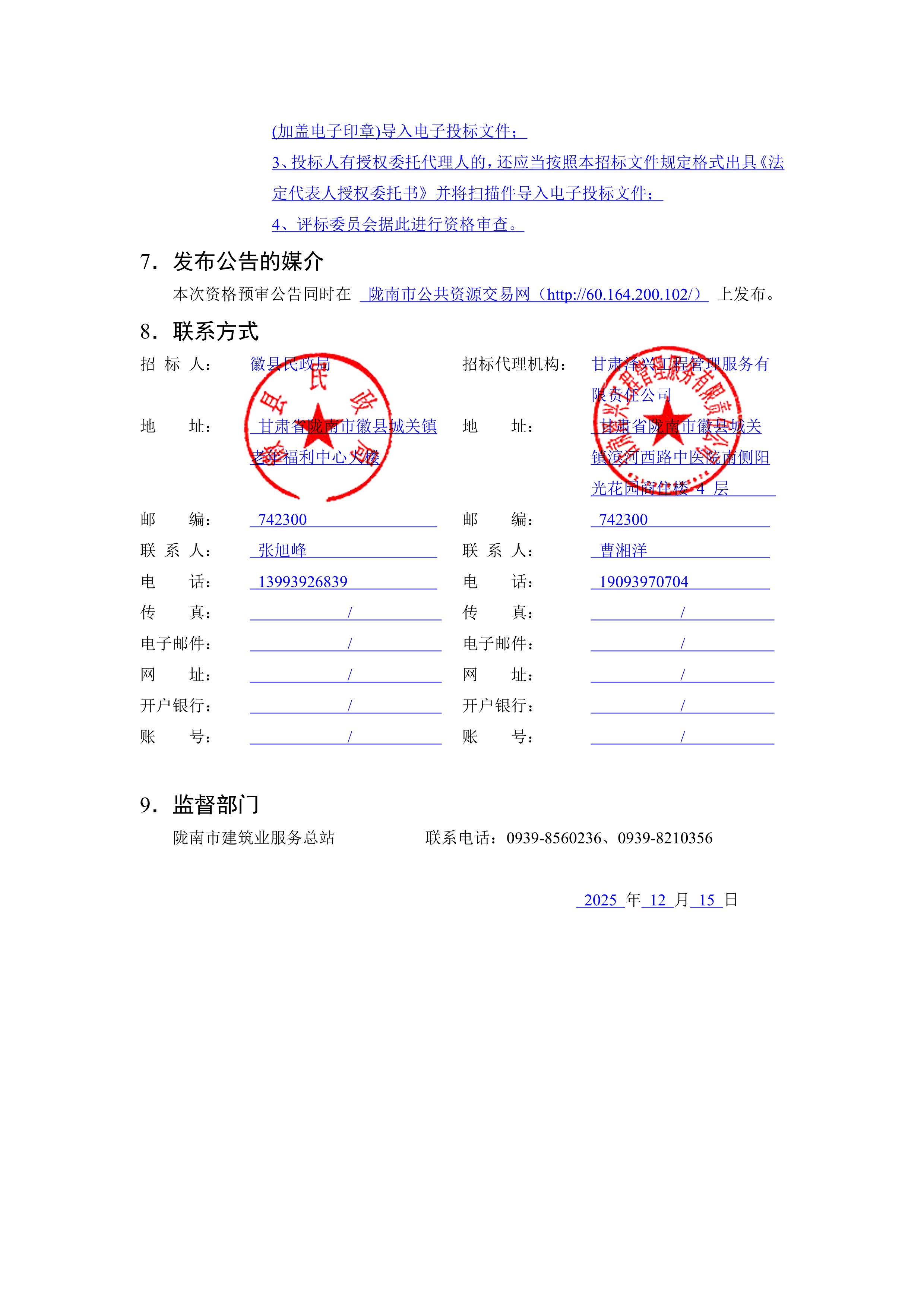 甘肃/陇南 招标采购