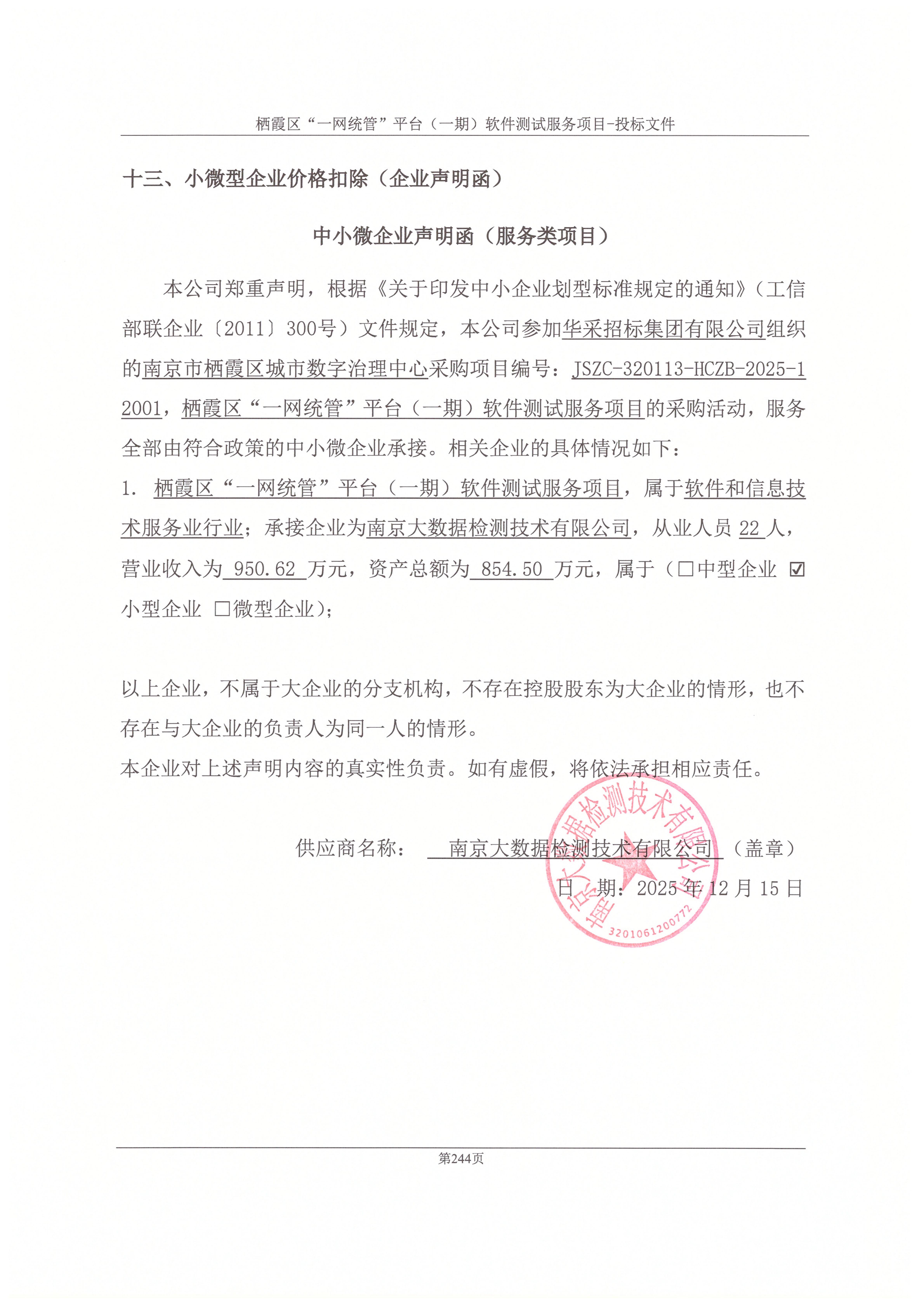[栖霞区]栖霞区“一网统管”平台(一期)软件测试服务项目