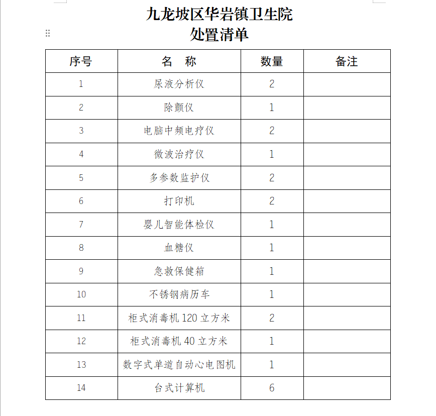 重庆市九龙坡区华岩镇卫生院****年固定资产报废处置公告资产处置公告
