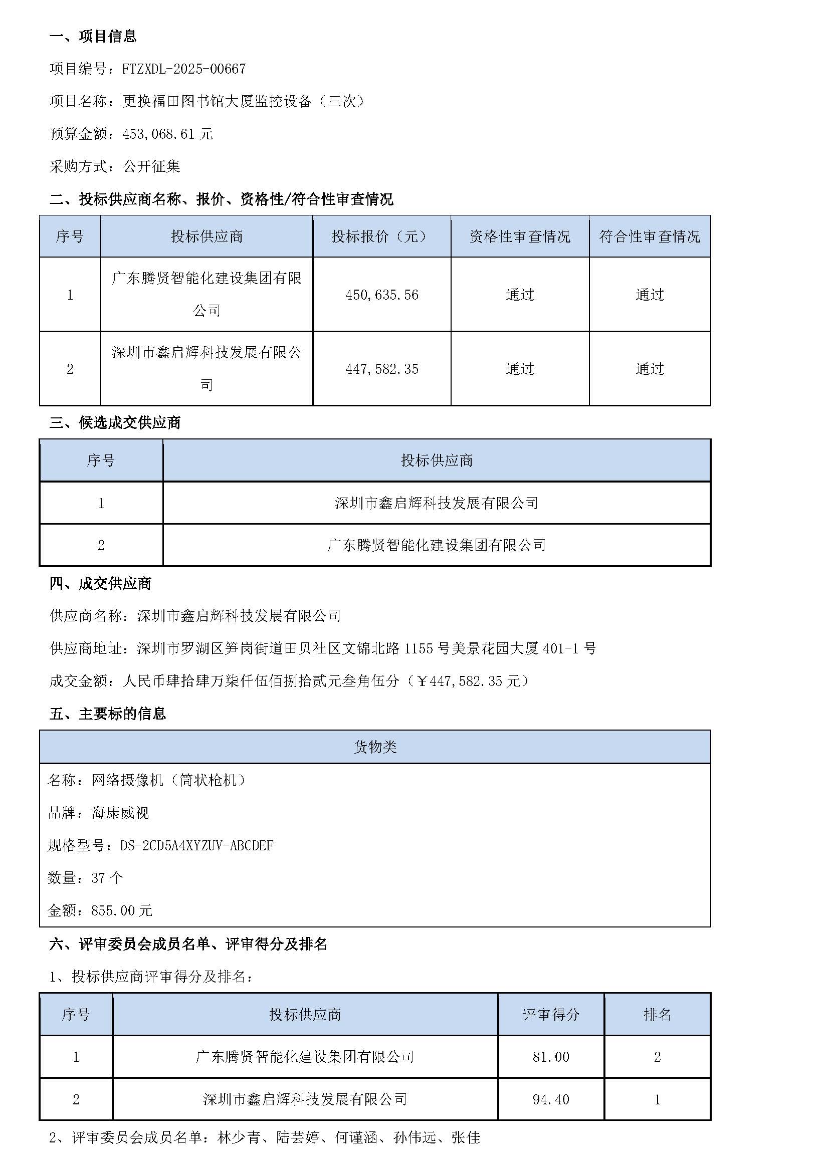 4更换福田图书馆大厦监控设备(三次)的采购结果公告