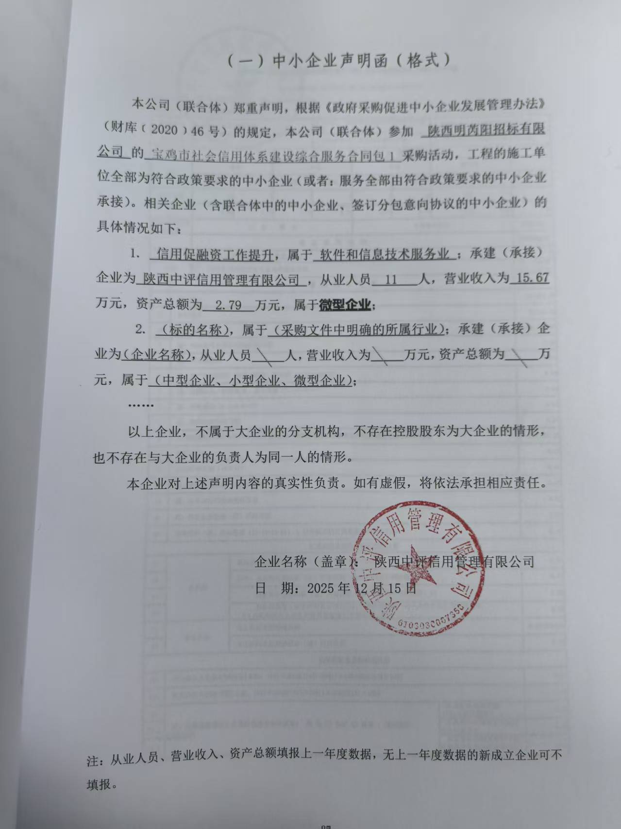 宝鸡市社会信用体系建设综合服务中标(成交)结果公告