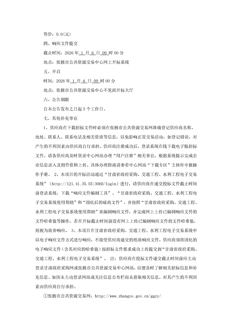 甘肃/张掖 招标采购