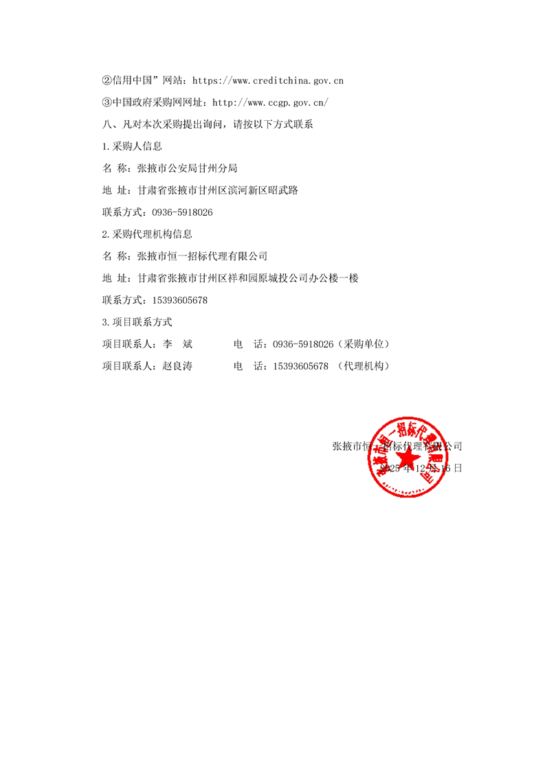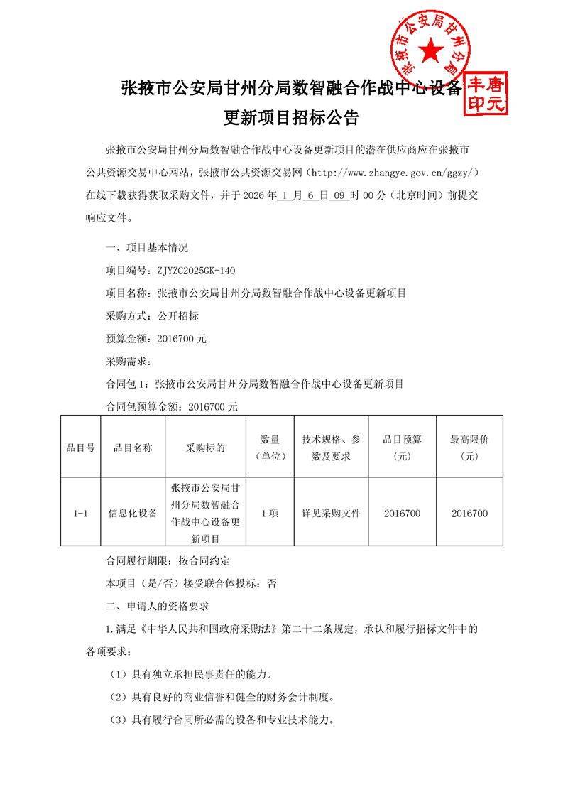 张掖市公安局甘州分局数智融合作战中心设备更新项目招标公告