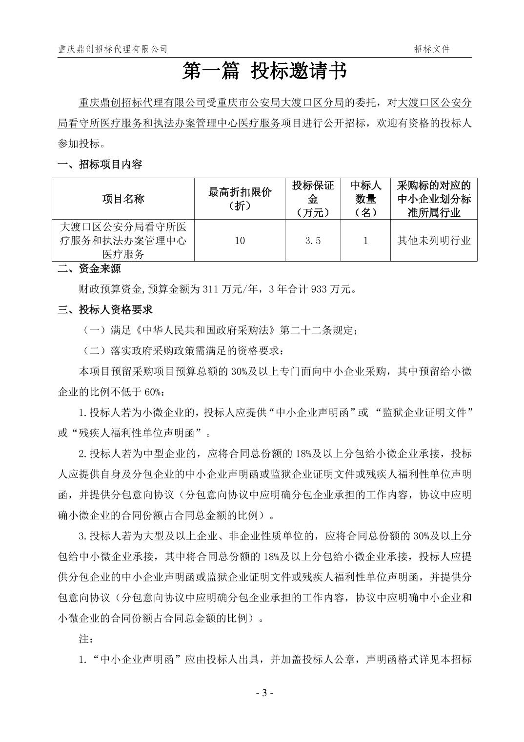 大渡口区公安分局看守所医疗服务和执法办案管理中心医疗服务公开招标公示公告