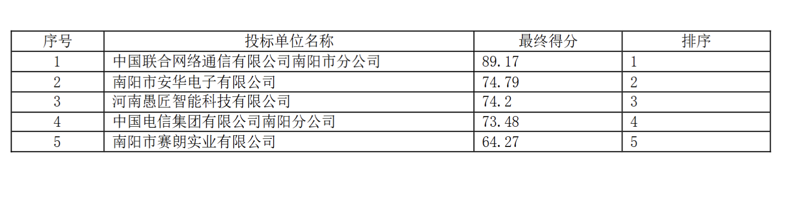 河南/南阳 中标结果