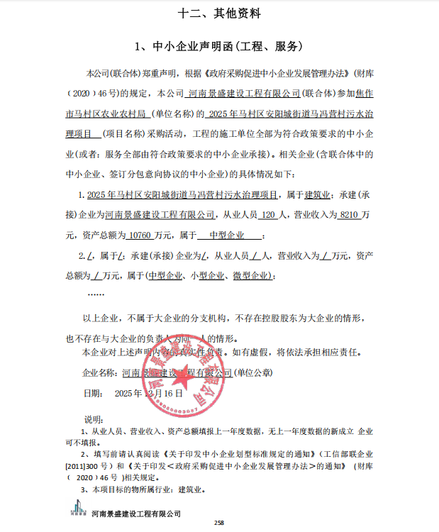 2025年马村区安阳城街道马冯营村污水治理项目成交公告