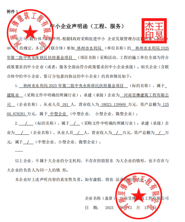林州市水利局2025年第二批中央水库移民扶持基金项目-成交公告