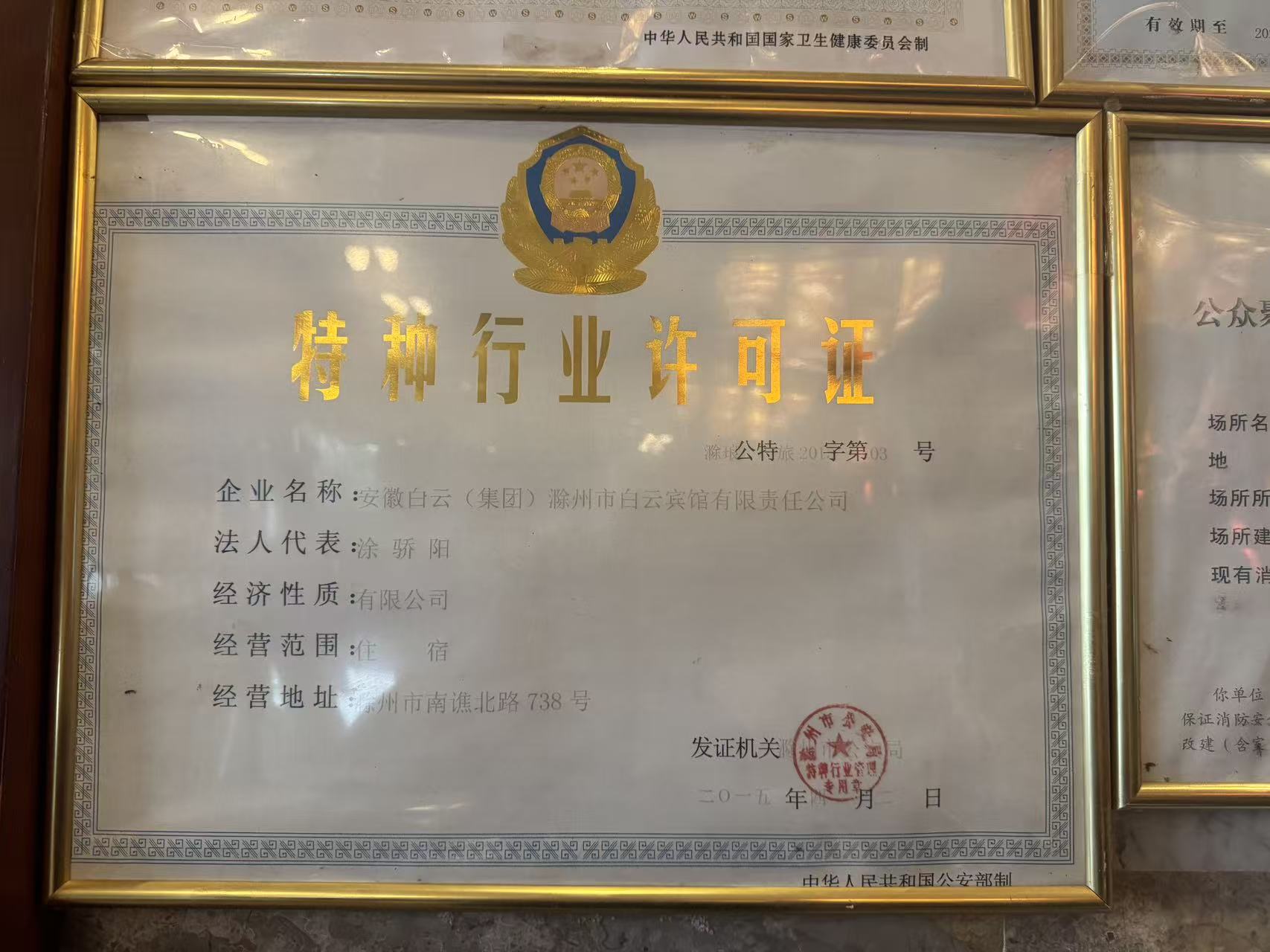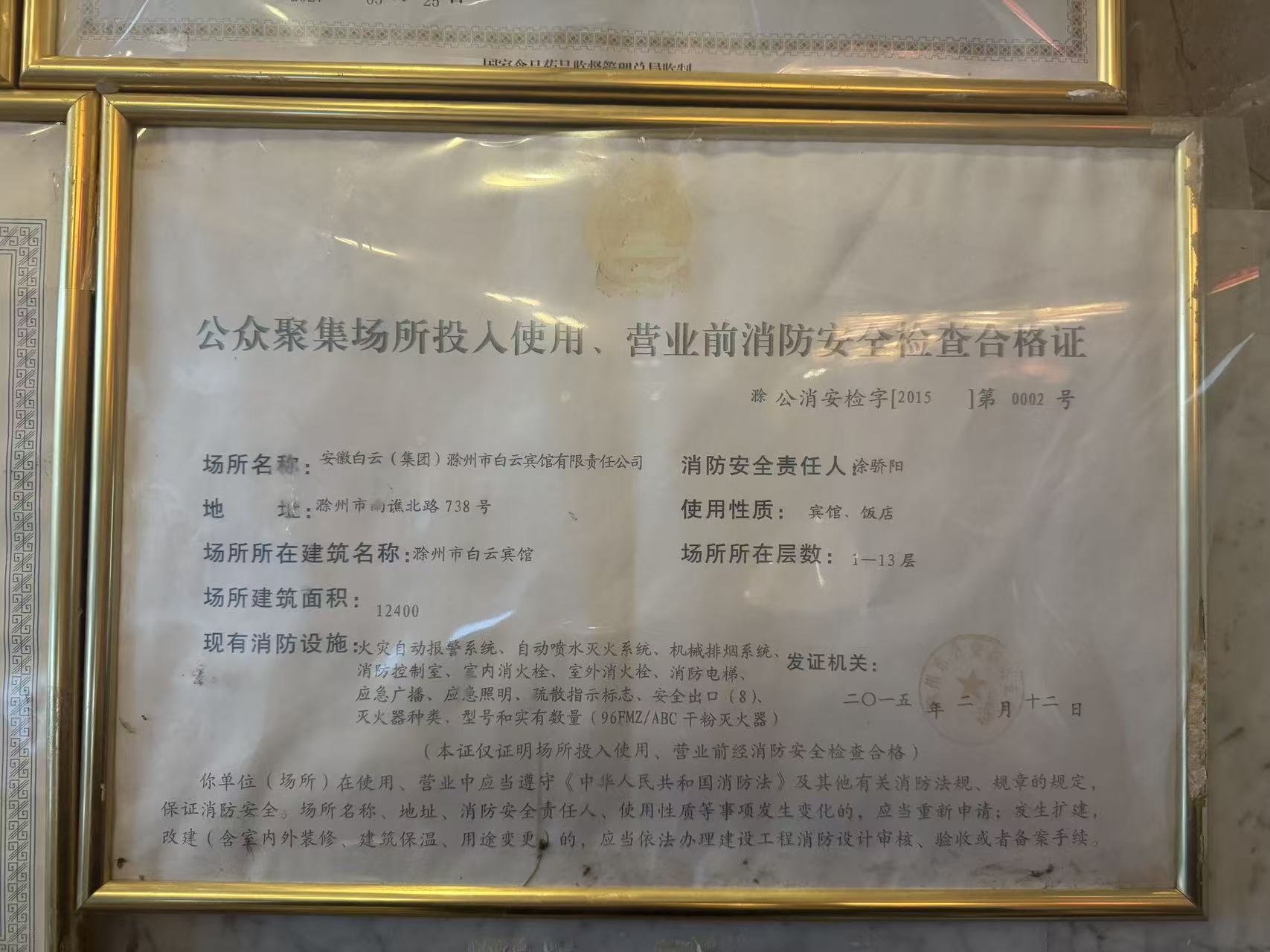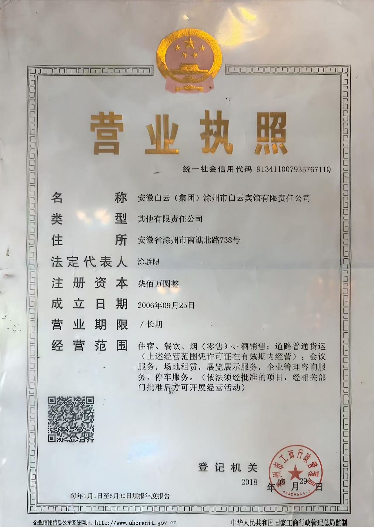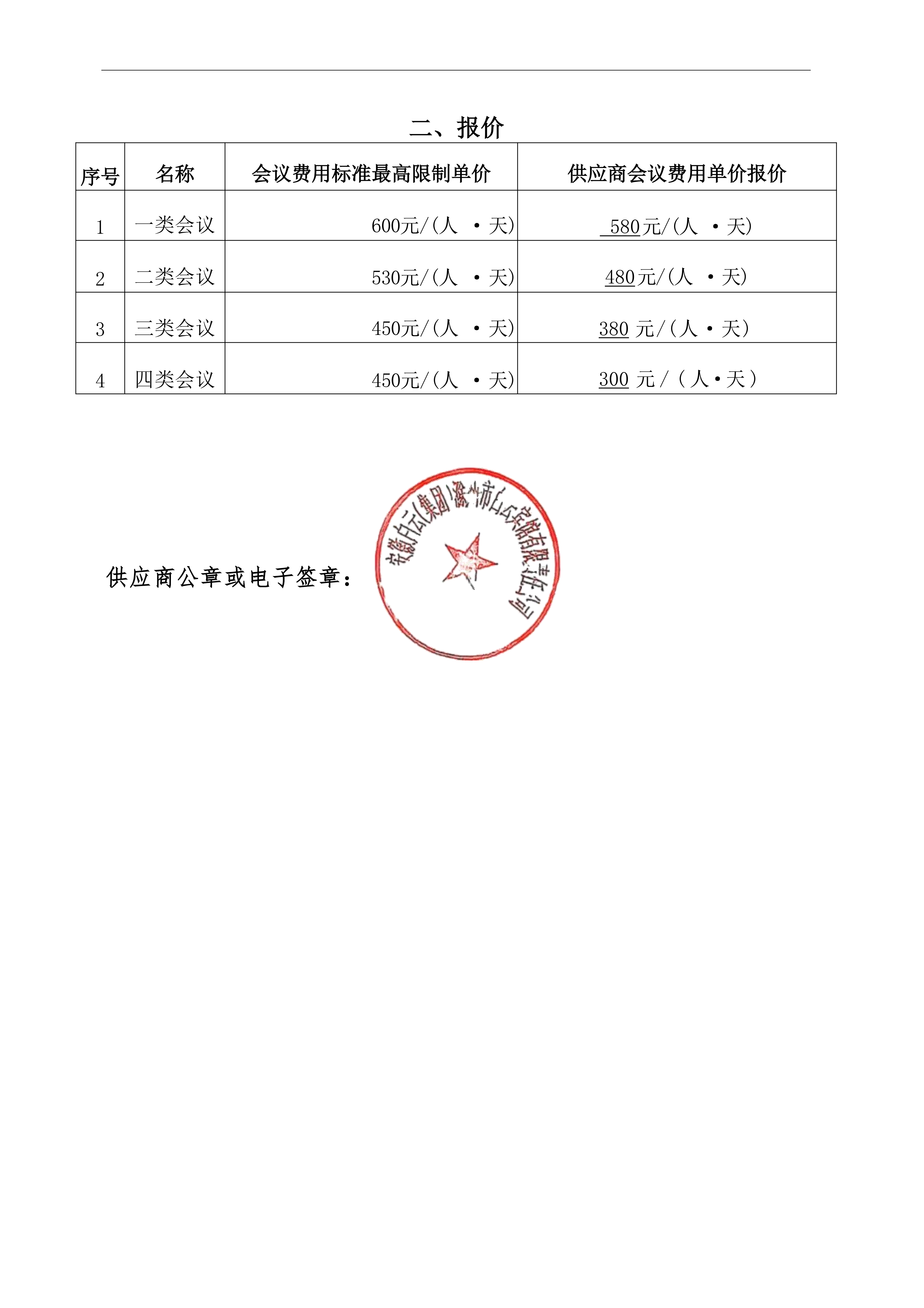 供应商名称:安徽白云(集团)滁州市白云宾馆有限责任公司