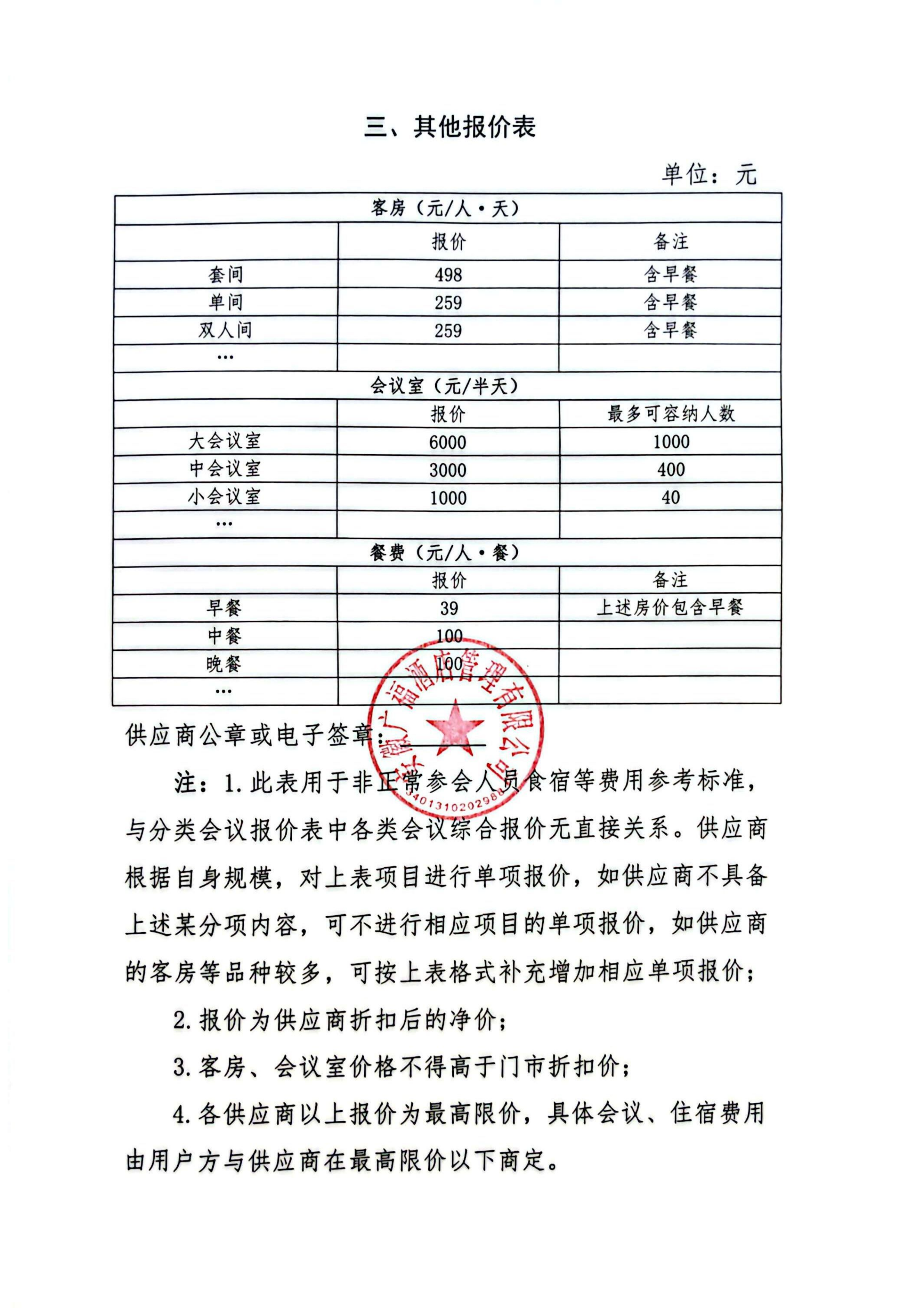 供应商名称:广福酒店管理有限公司