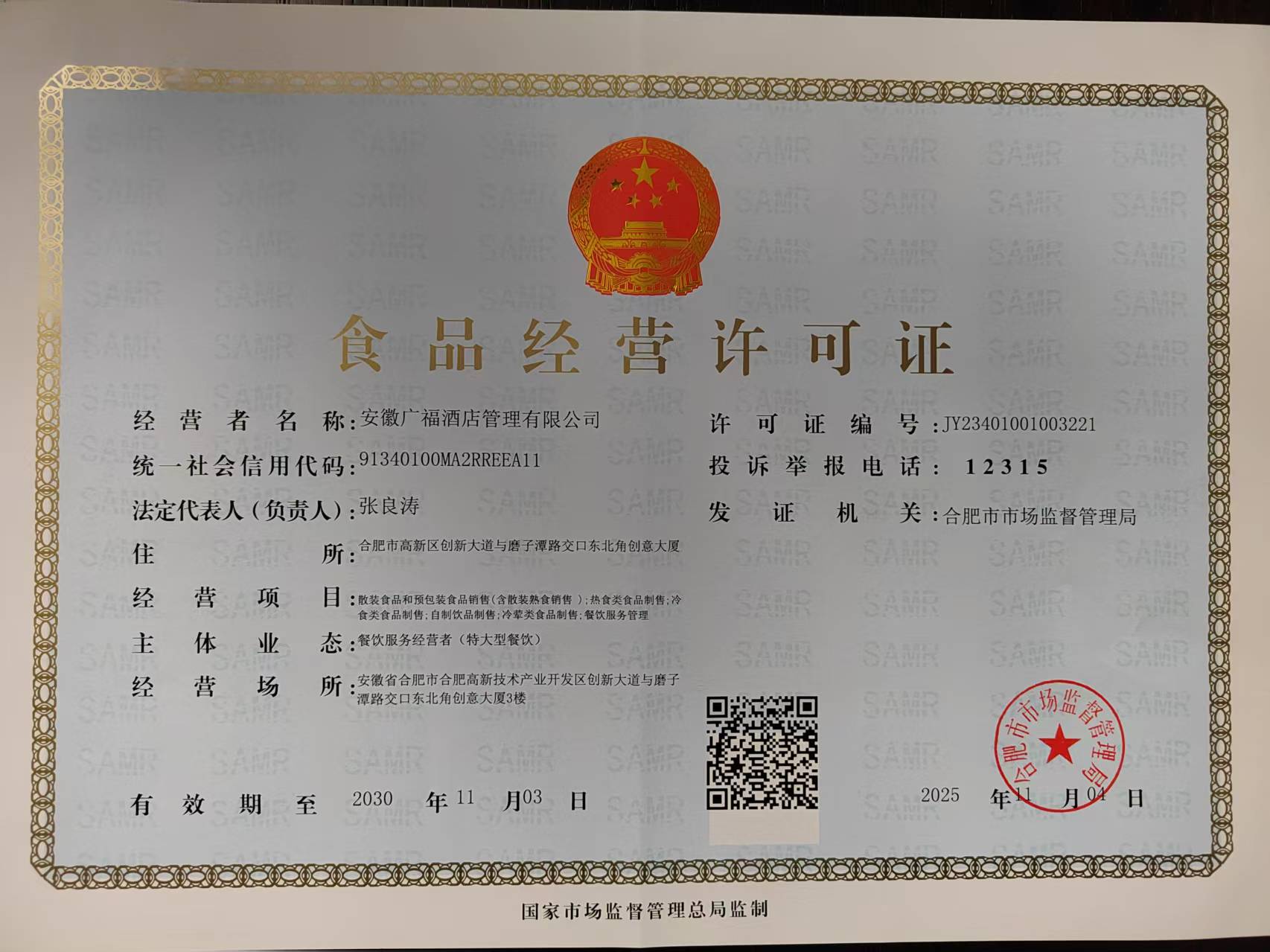有效期内的《特种行业许可证》:广福辰茂酒店特行证.***