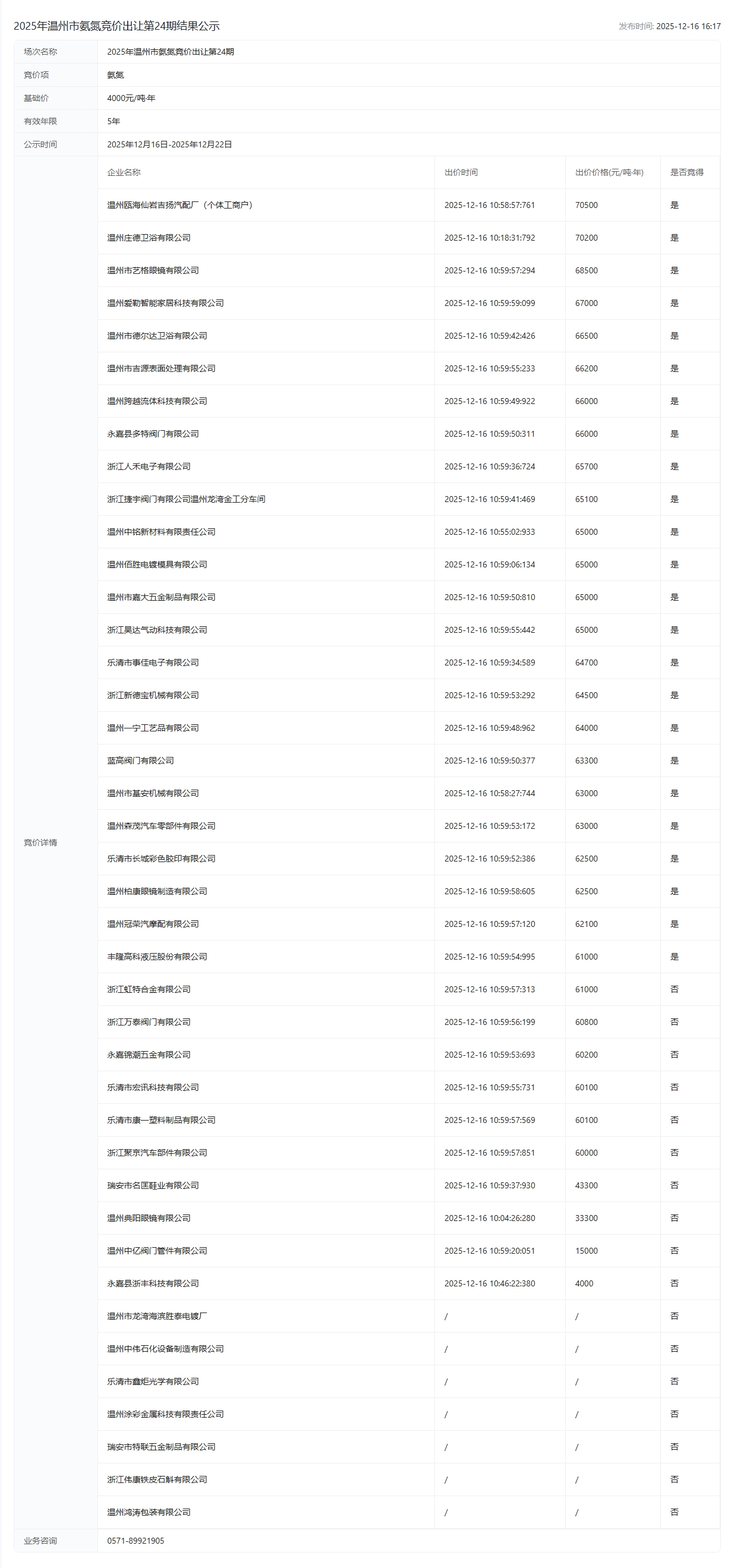 竞价出让第24期结果公示