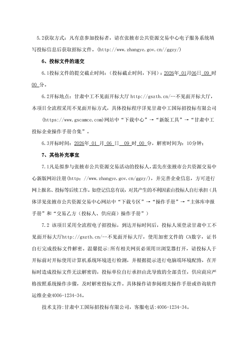 甘肃/张掖 招标采购