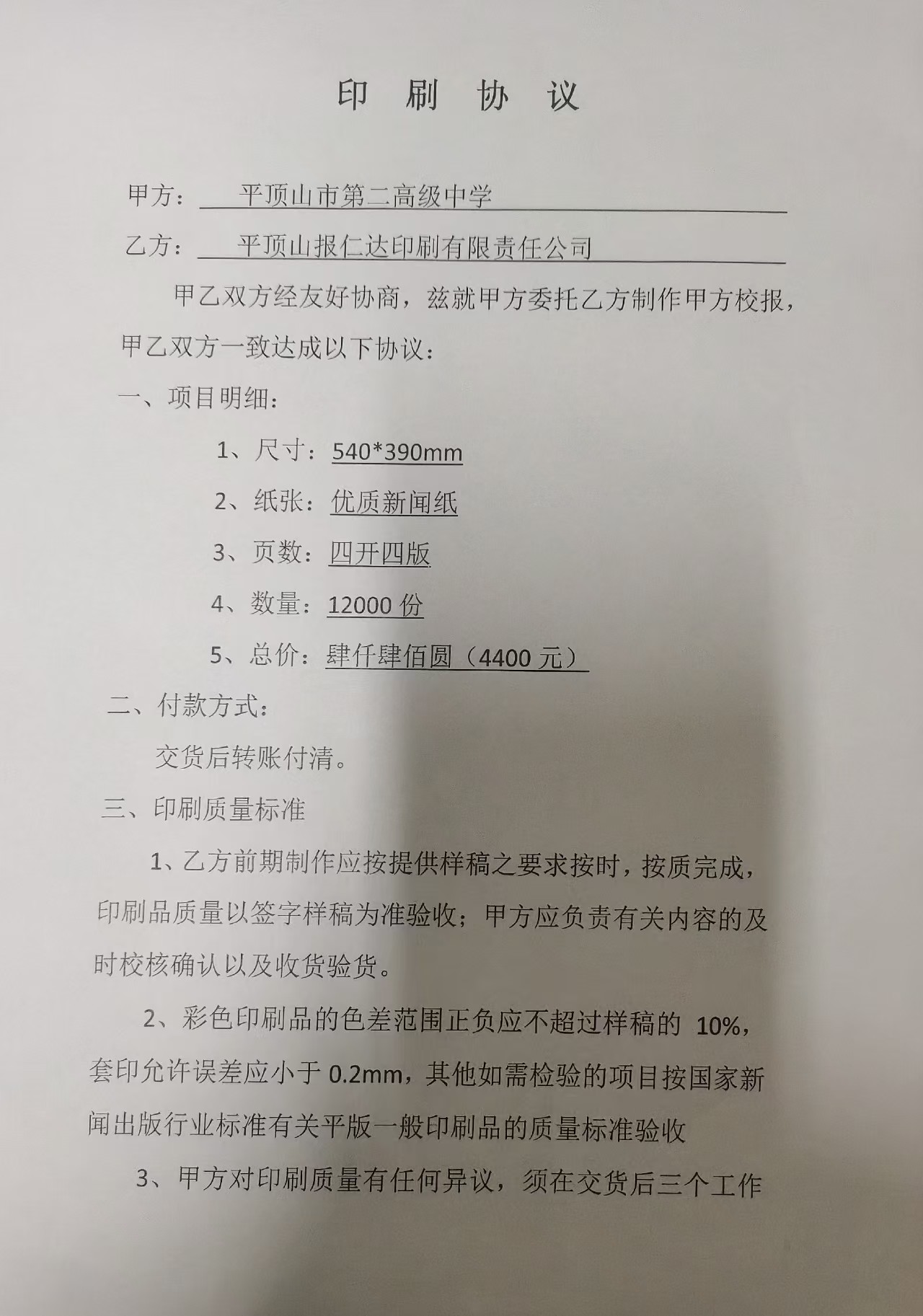 | *.供应商(乙方):平顶山报仁达印刷有限责任公司 | ||||||||||||