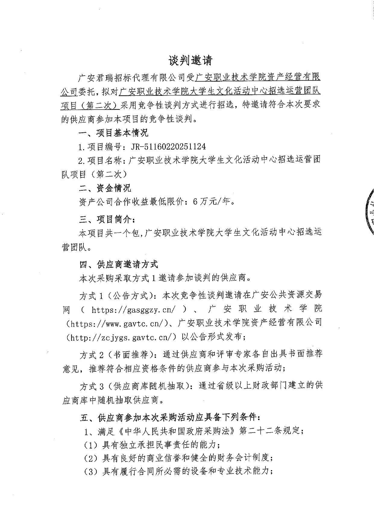 大学生文化活动中心招选合作商项目(第二次)竞争性谈判邀请公告