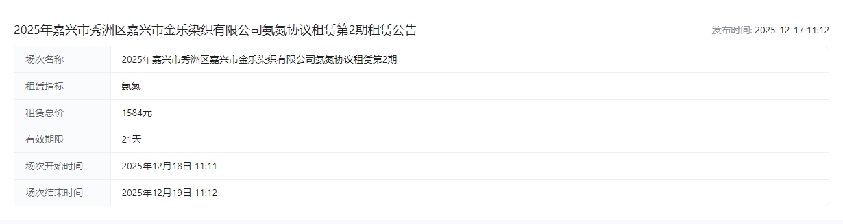 市金乐染织有限公司氨氮协议租赁第2期租赁公告