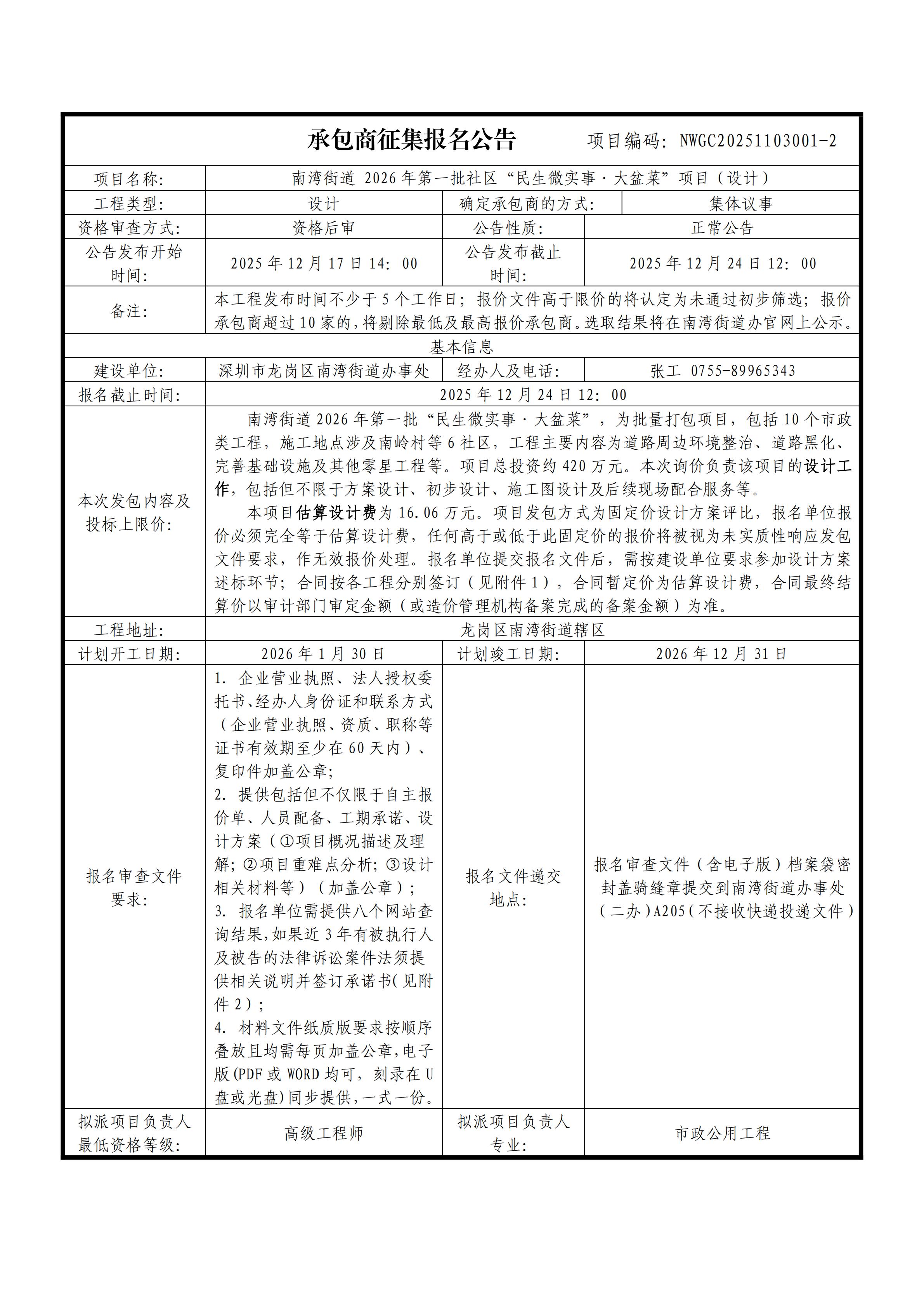 8南湾街道2026年第一批社区“民生微实事·大盆菜”项目——设计的采购公告