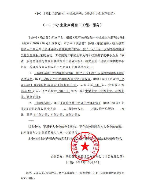 岐山县青化镇政府青化镇焦六村第一批“千万工程”示范村省级财政奖补资金项目中标(成交)结果公告
