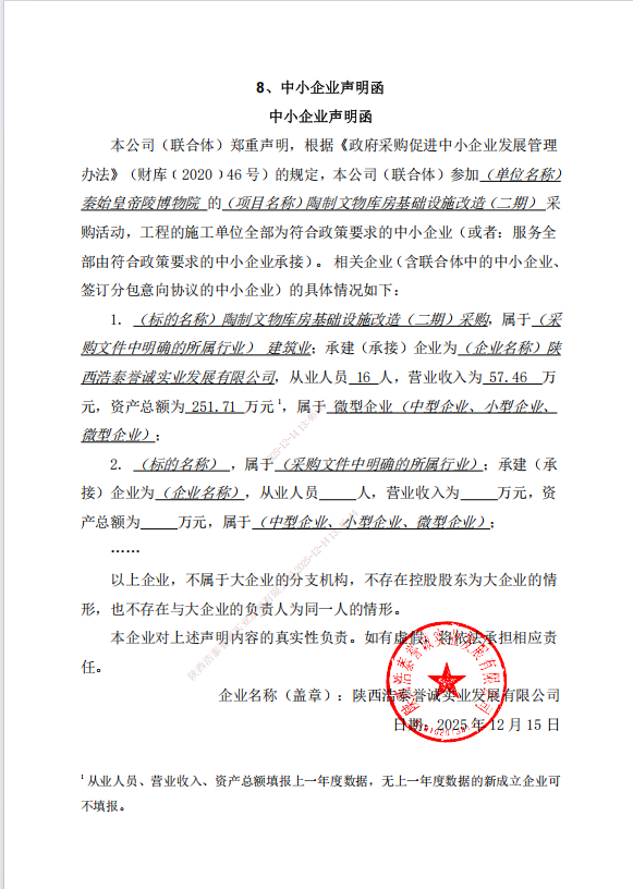 秦始皇帝陵博物院陶制文物库房基础设施改造(二期)成交结果公告