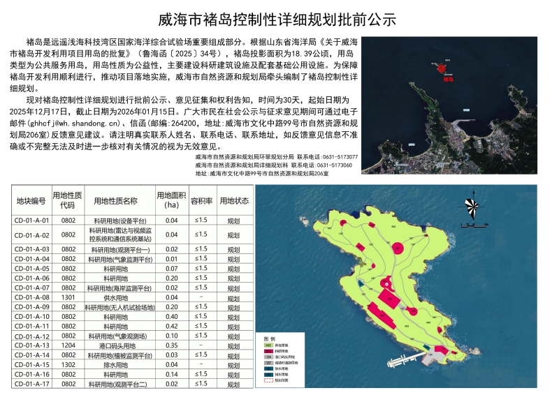 市褚岛控制性详细规划批前公示