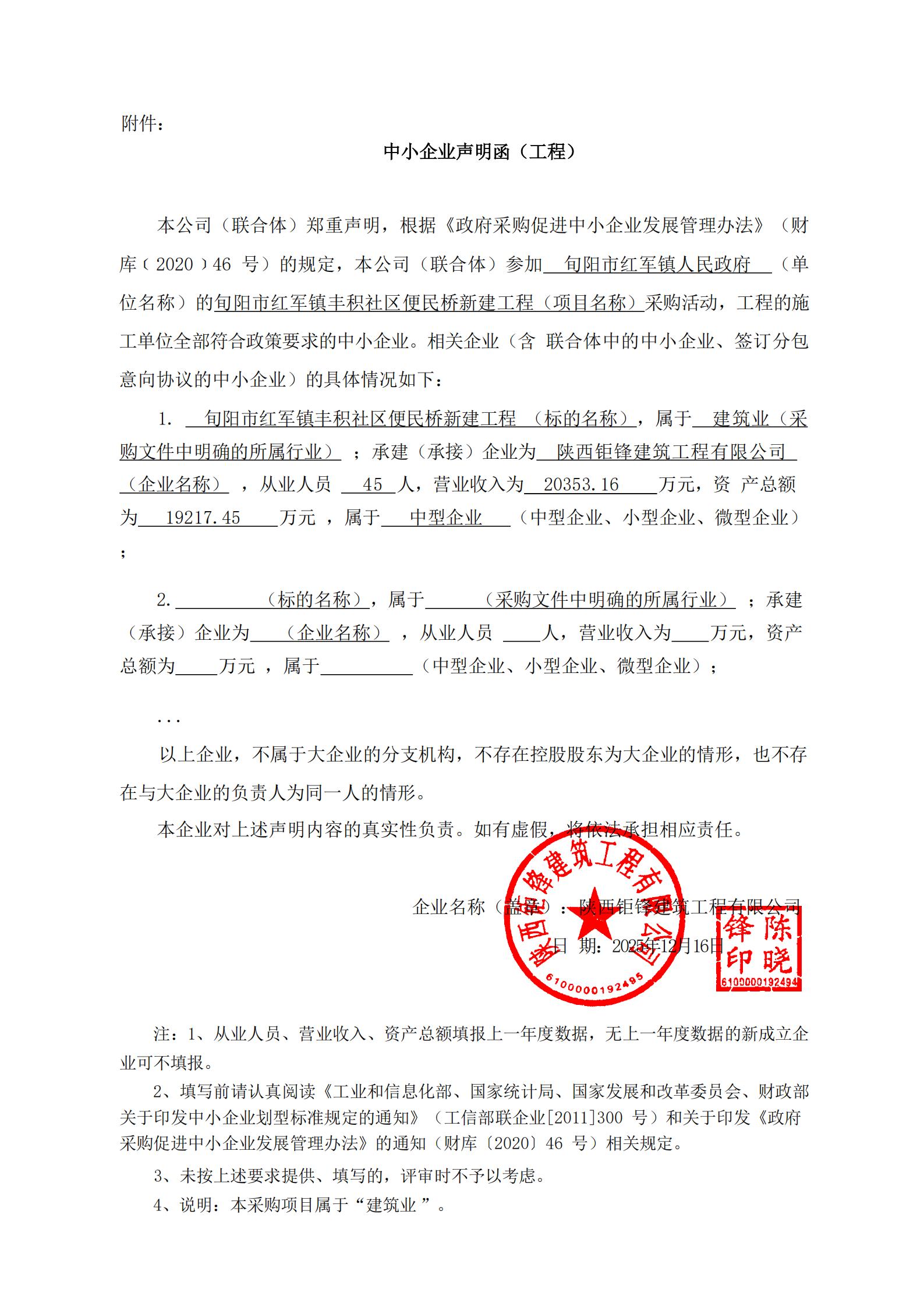 旬阳市红军镇丰积社区便民桥新建工程中标(成交)结果公告