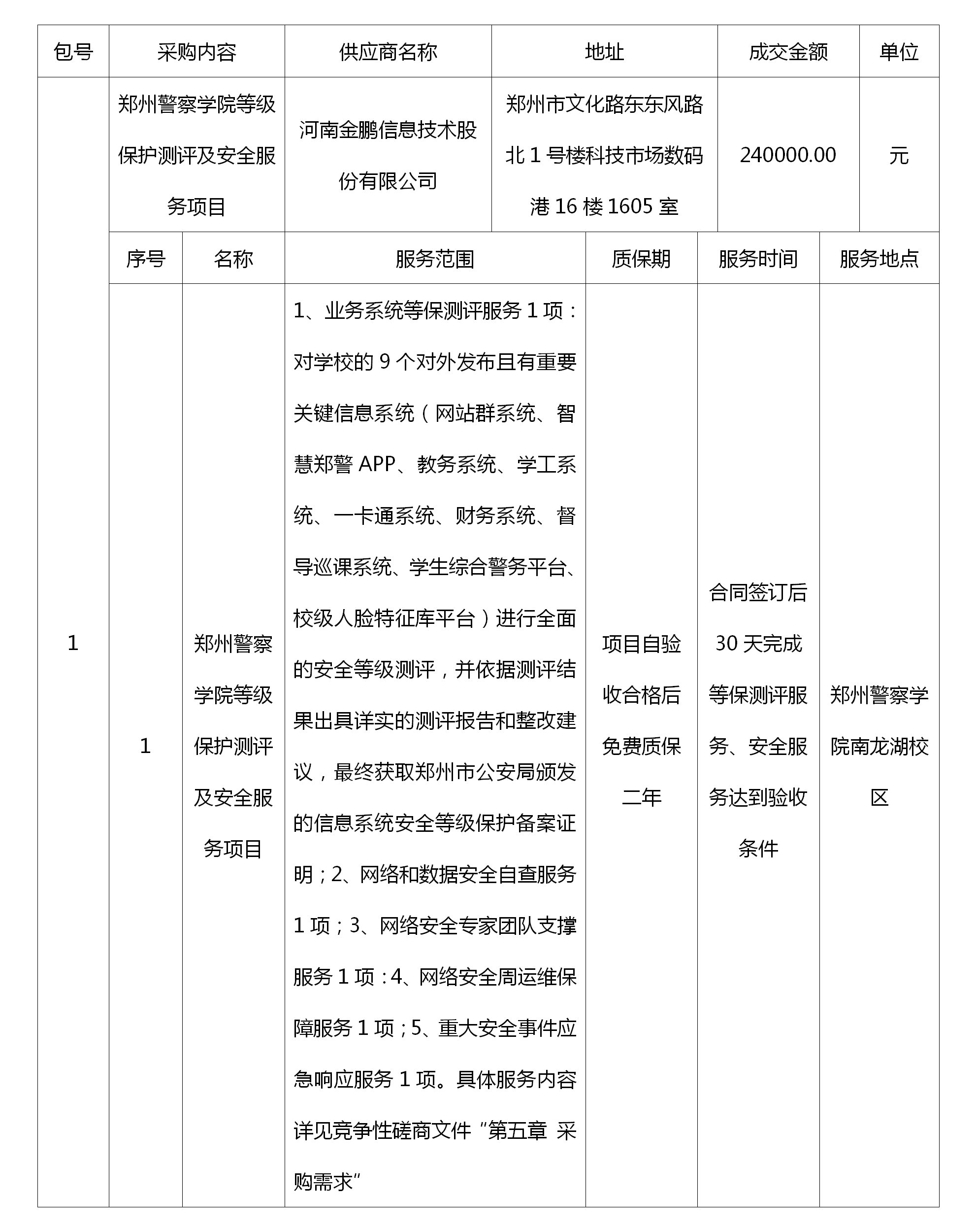 本次成交公告在《中国政府采购网》、《中国招标投标公共服务平台》、《郑州警察学院校园网》上发布,成交公告期限为*个工作日。