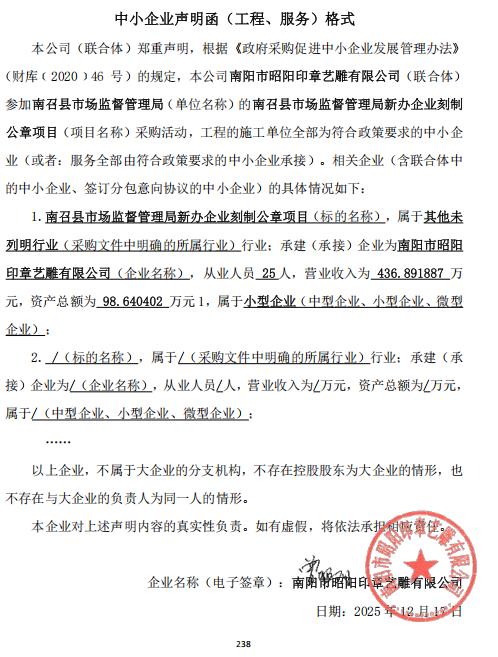 南召县市场监督管理局新办企业刻制公章项目-成交公告