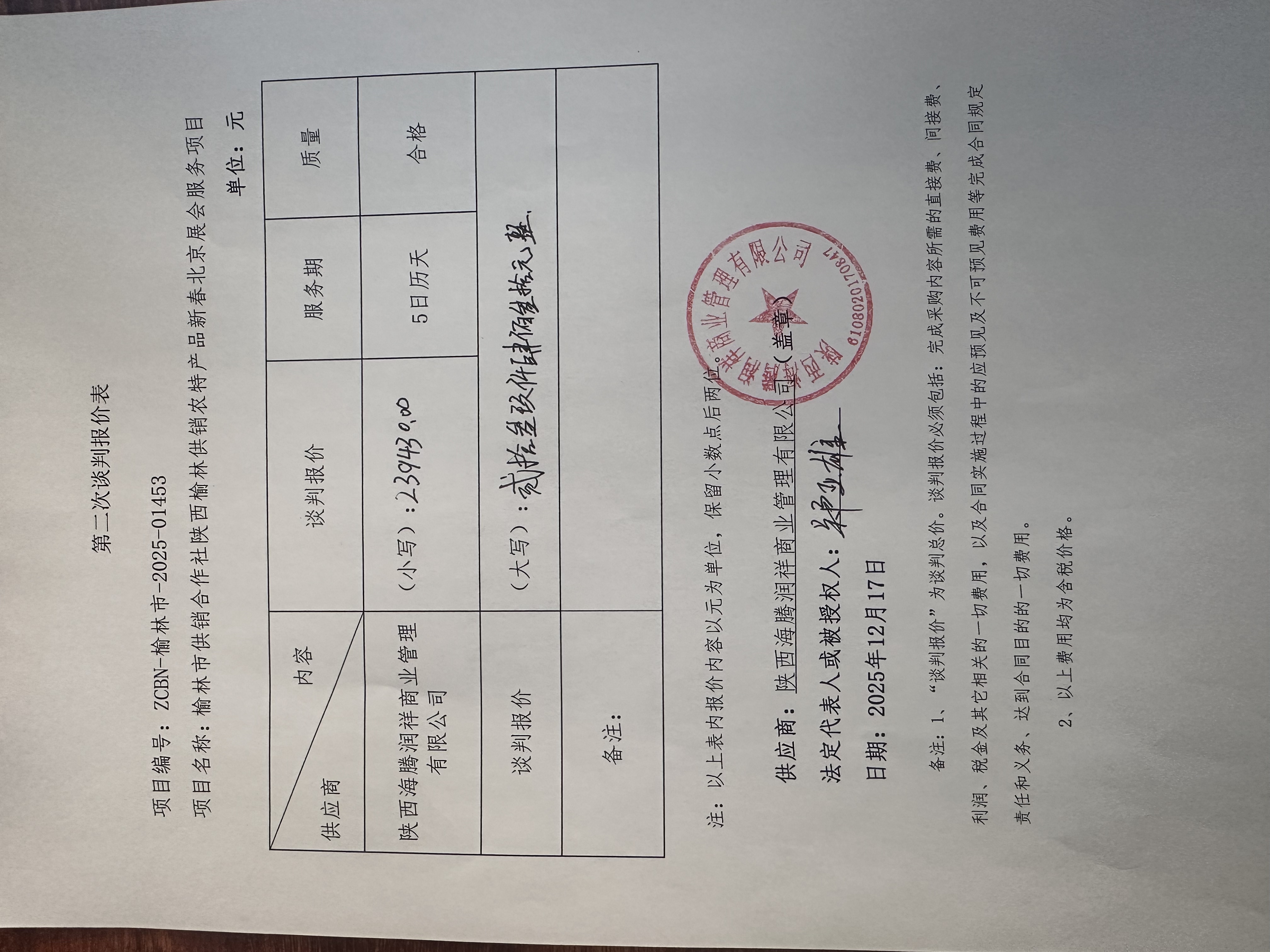 榆林市供销合作社陕西榆林供销农特产品新春北京展会服务项目成交结果公告