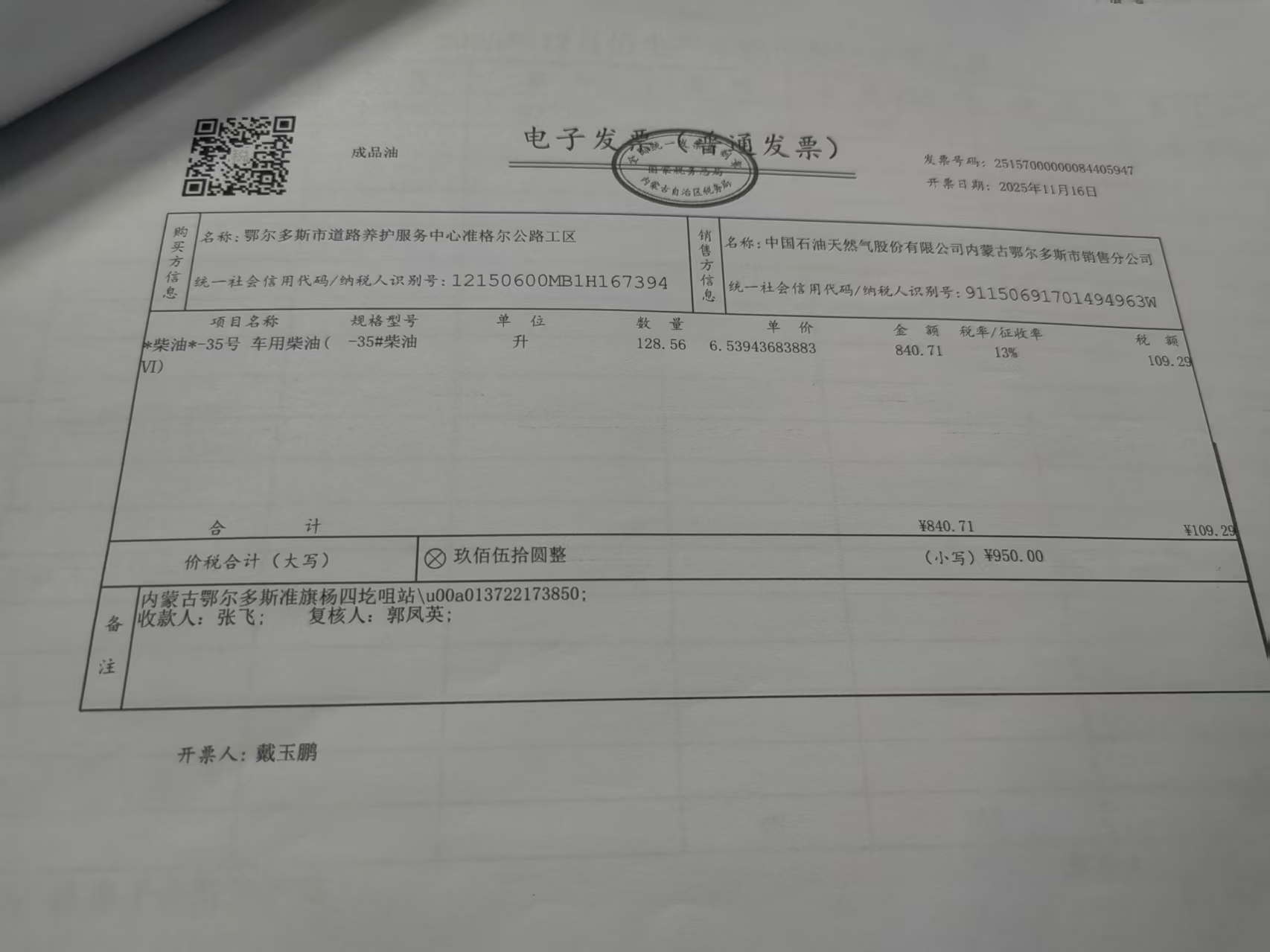 鄂尔多斯市道路养护服务中心准格尔公路工区前房子公路养护站车辆油料费(中石油)政府采购合同公告