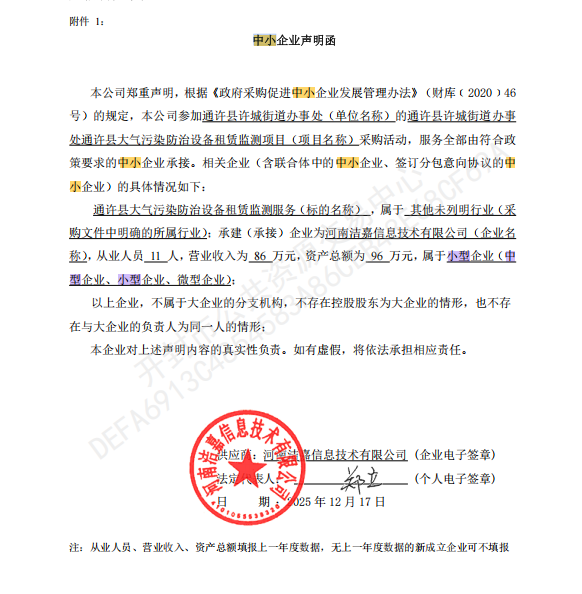 通许县许城街道办事处大气污染防治设备租赁监测项目-成交公告