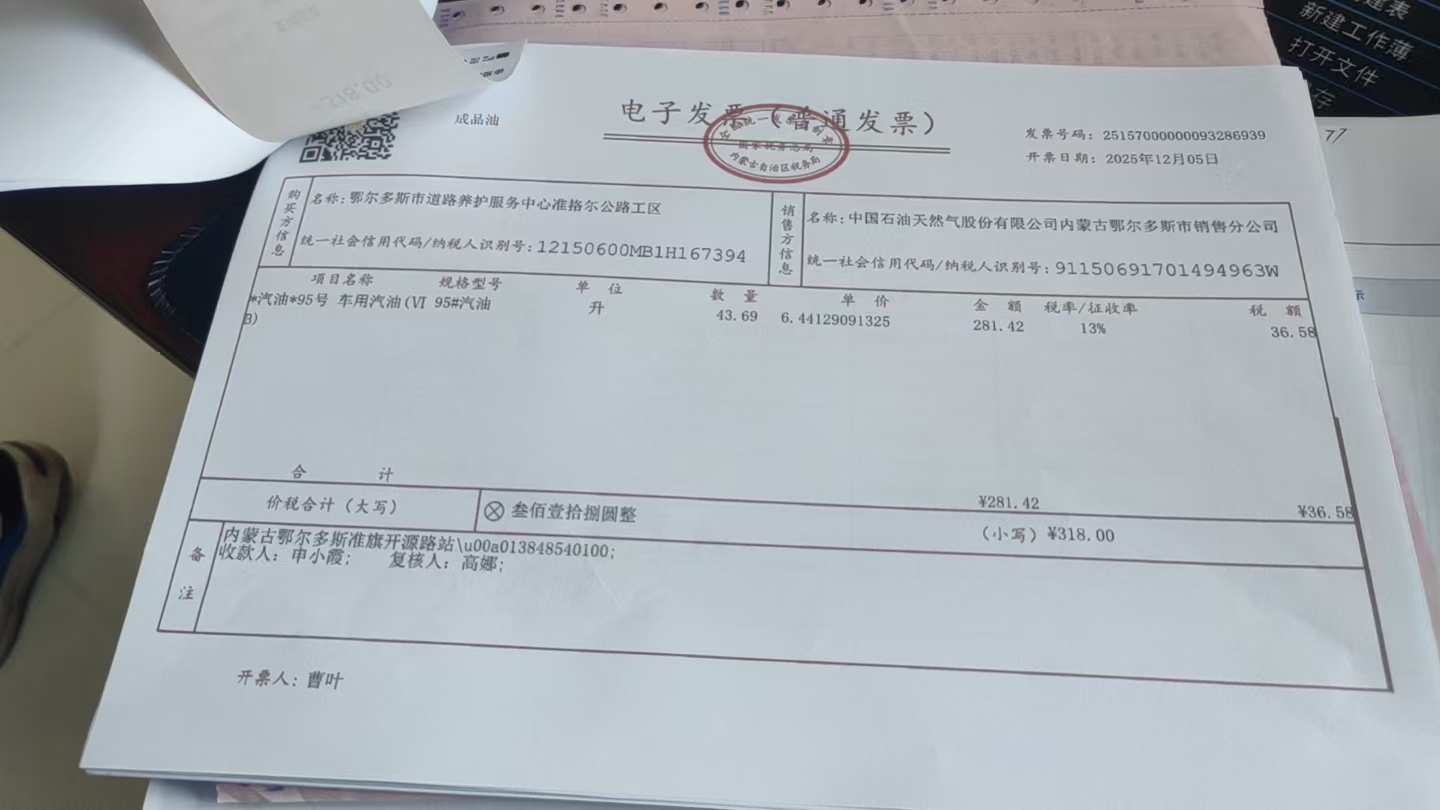 鄂尔多斯市道路养护服务中心准格尔公路工区蒙K697G油料费(秦瑞军)政府采...