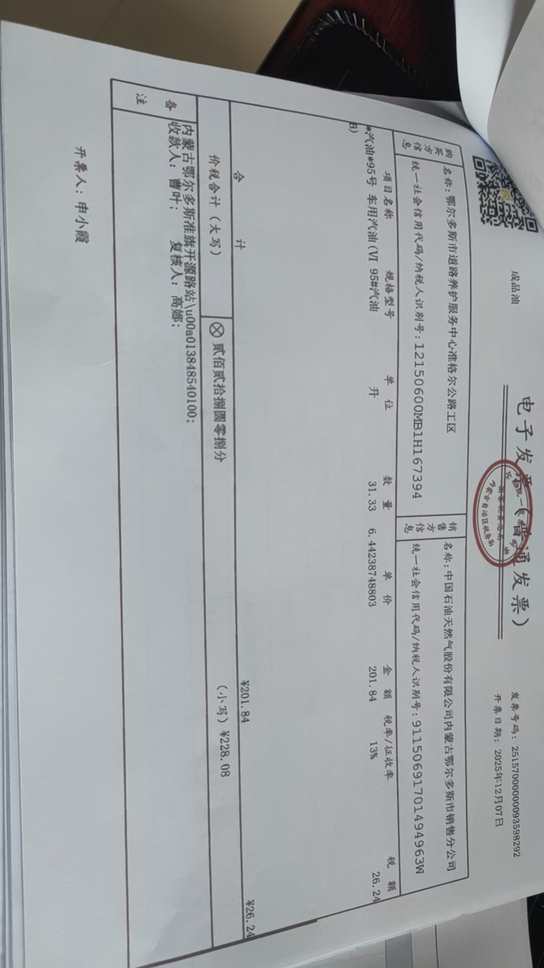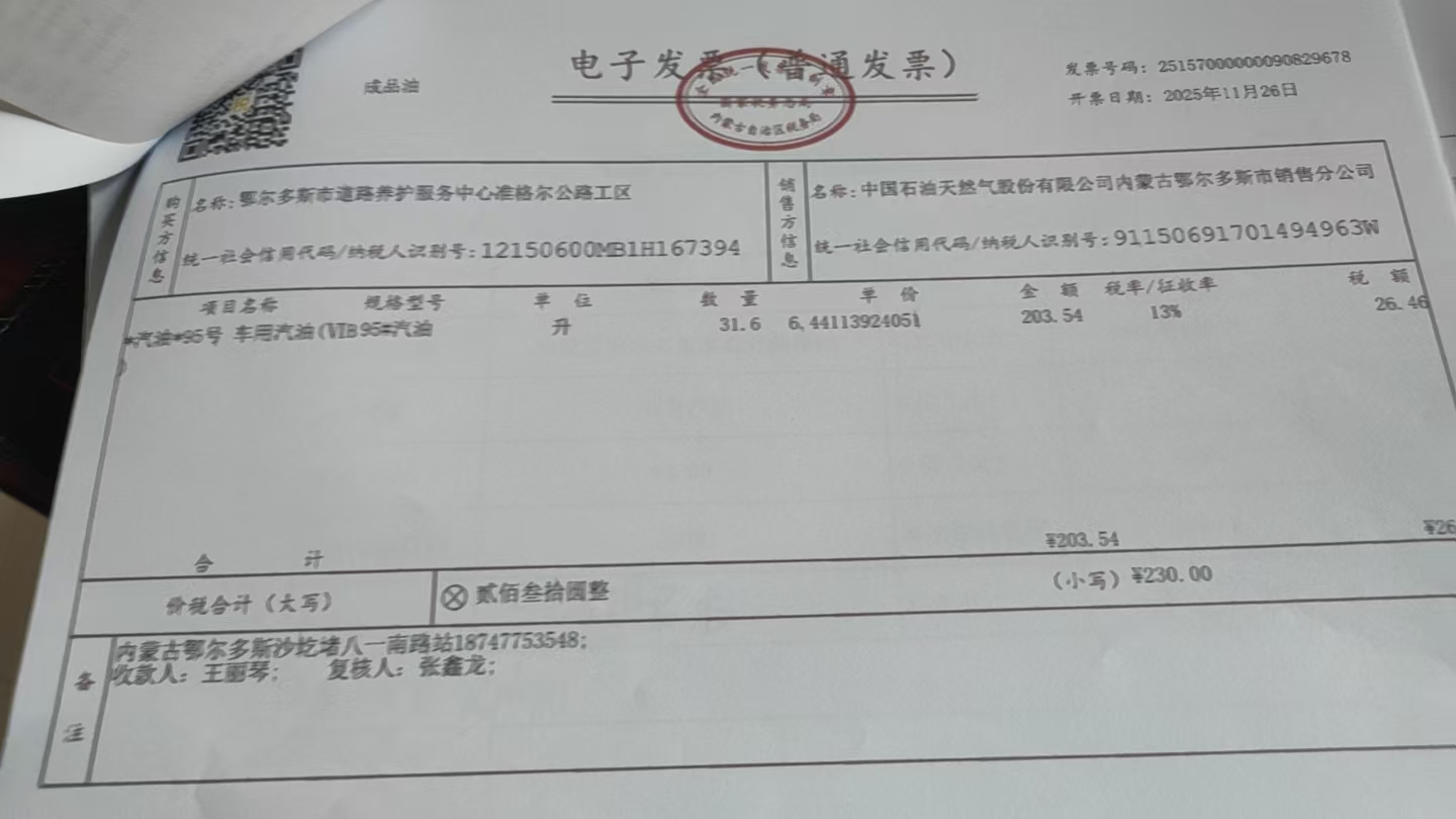 鄂尔多斯市道路养护服务中心准格尔公路工区蒙KP697G油料费(赵军权)政府采...
