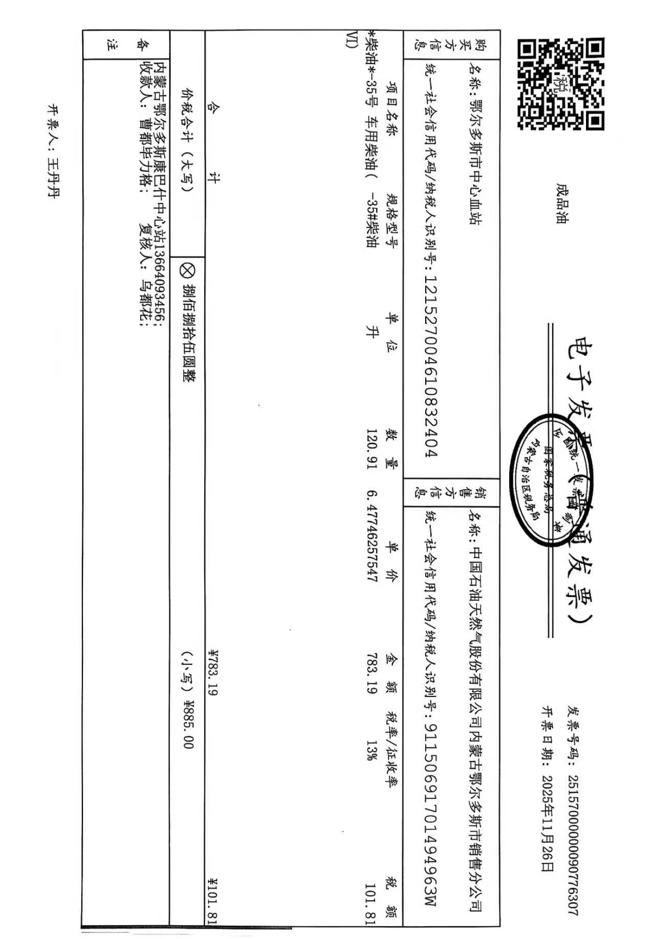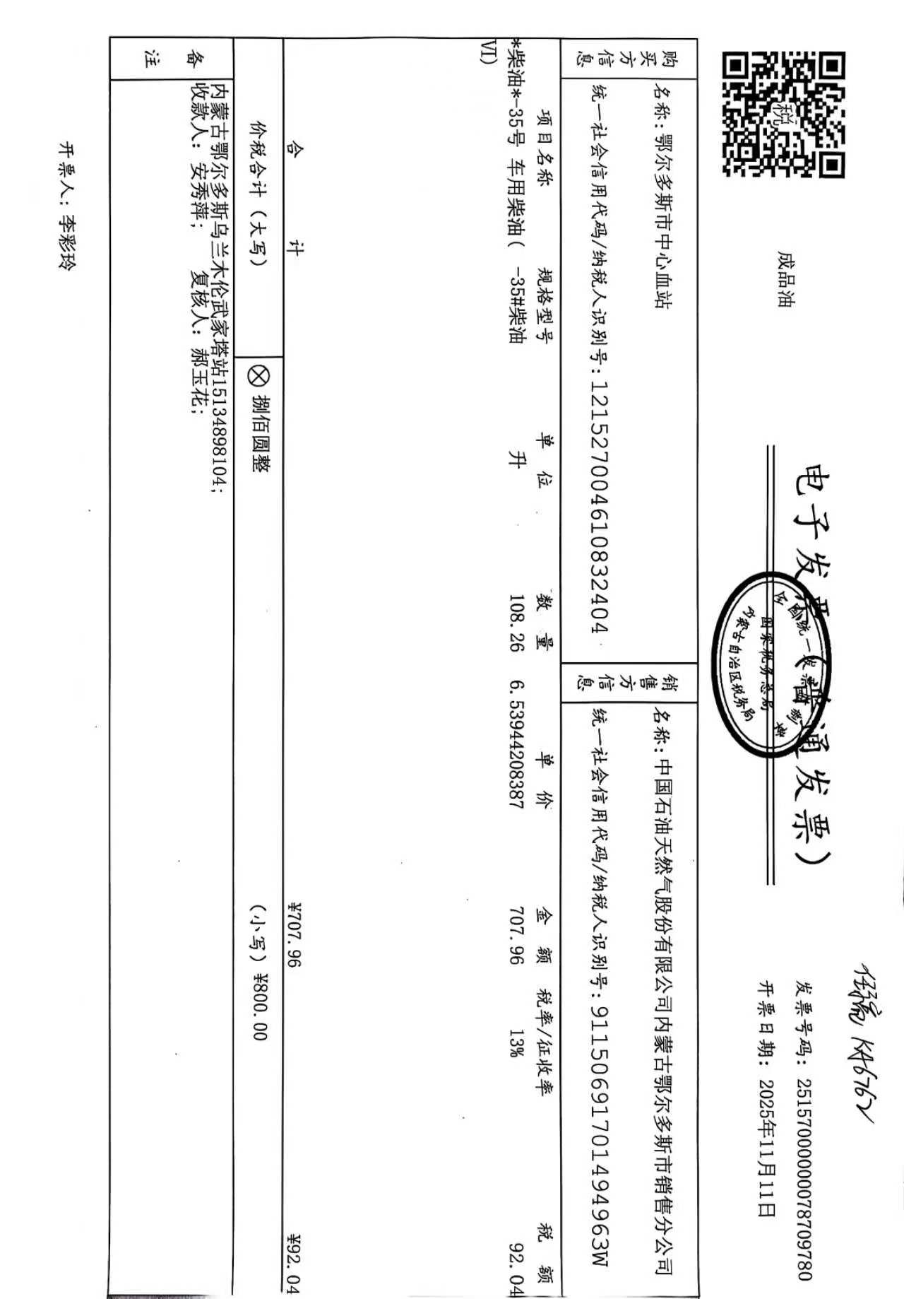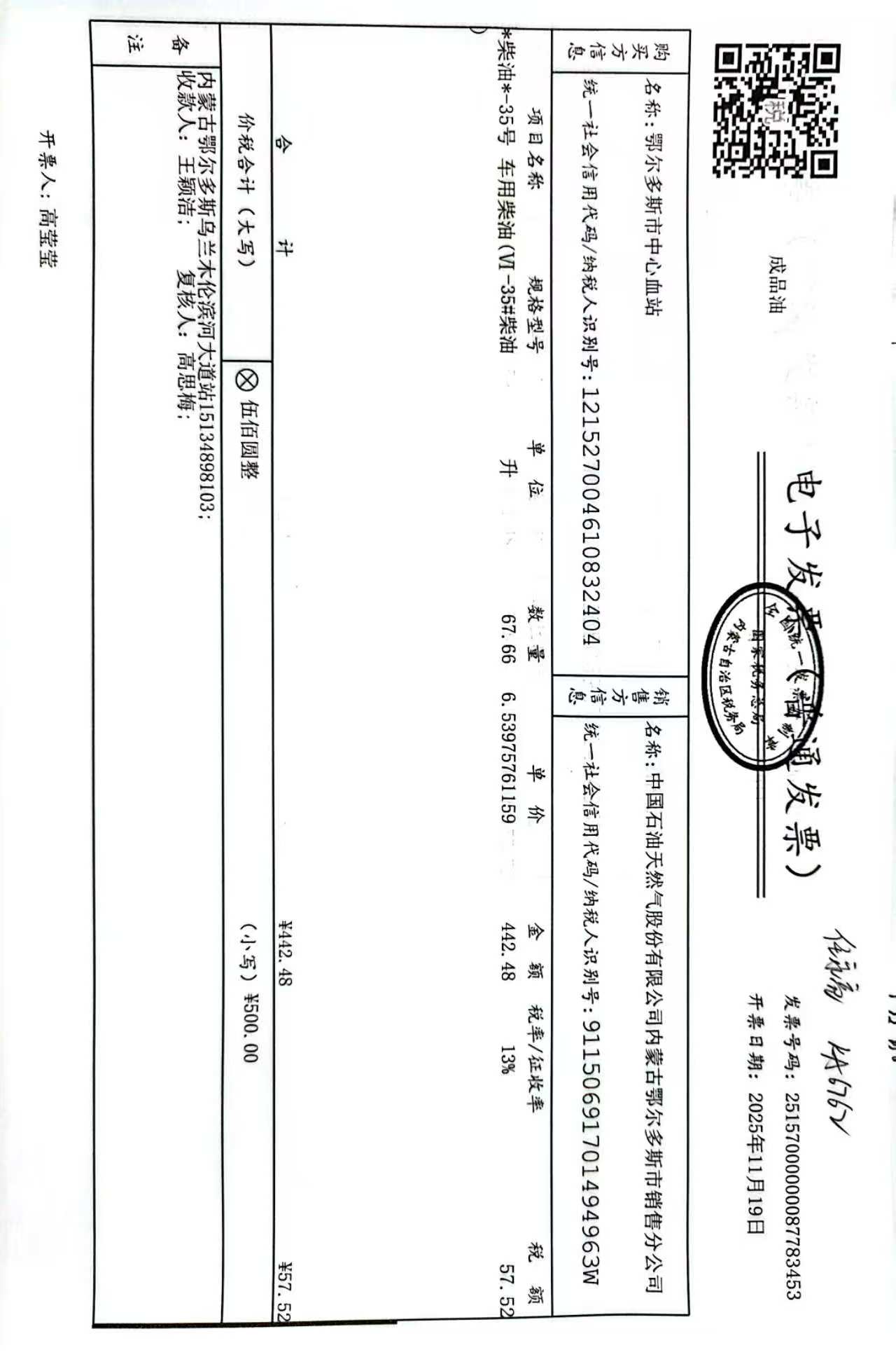 鄂尔多斯市中心血站鄂尔多斯市中心血站车辆11月用油政府采购合同公告