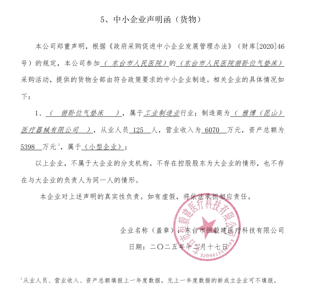 东台市人民医院俯卧位气垫床项目中标结果公告