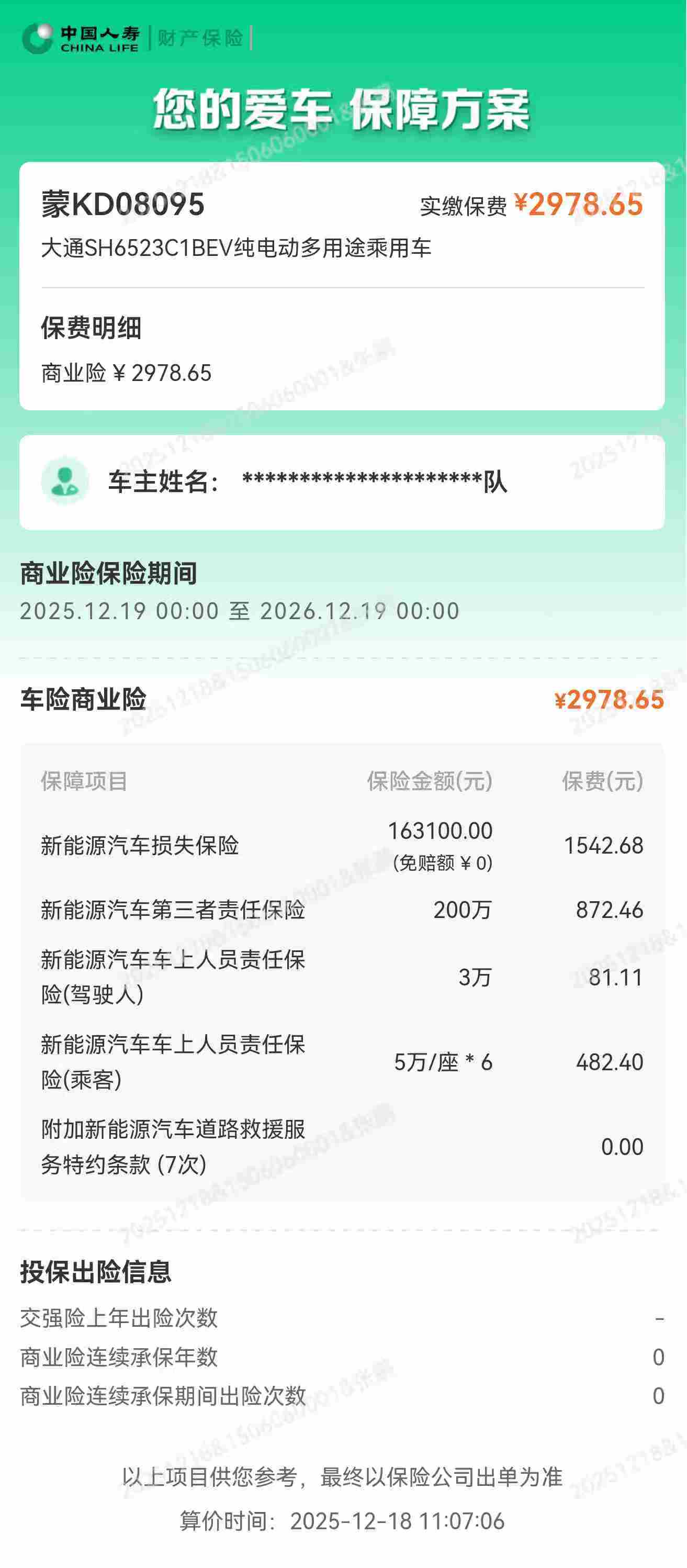 一、合同编号:*******二、合同名称:公务用车保险合同三、项目编号:鄂财购备字(电子)[****]*****号四、项目名称:车辆保险服务五、合同主体采购人(甲方):鄂尔多斯市交通运输综合行政执法支队乌审旗大队 地址:嘎鲁图镇林荫路**号 联系方式:*********** 供应商(乙方):中国人寿财产保险股份有限公司鄂尔多斯市中心支公司 地址:内蒙古自治区鄂尔多斯市东胜区内蒙古自治区鄂尔多斯市东胜区天骄街道鄂托克西街北迎宾路东鑫隆综合商务楼**楼西北侧 **楼整层 联系方式:*********** 六、合同主要信息主要标的: