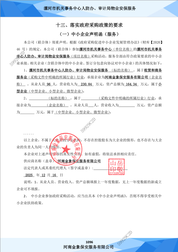 漯河市机关事务中心人防办、审计局物业安保服务*成交公告