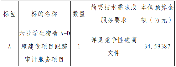 项目名称:六号学生宿舍***座建设项目跟踪审计服务项目